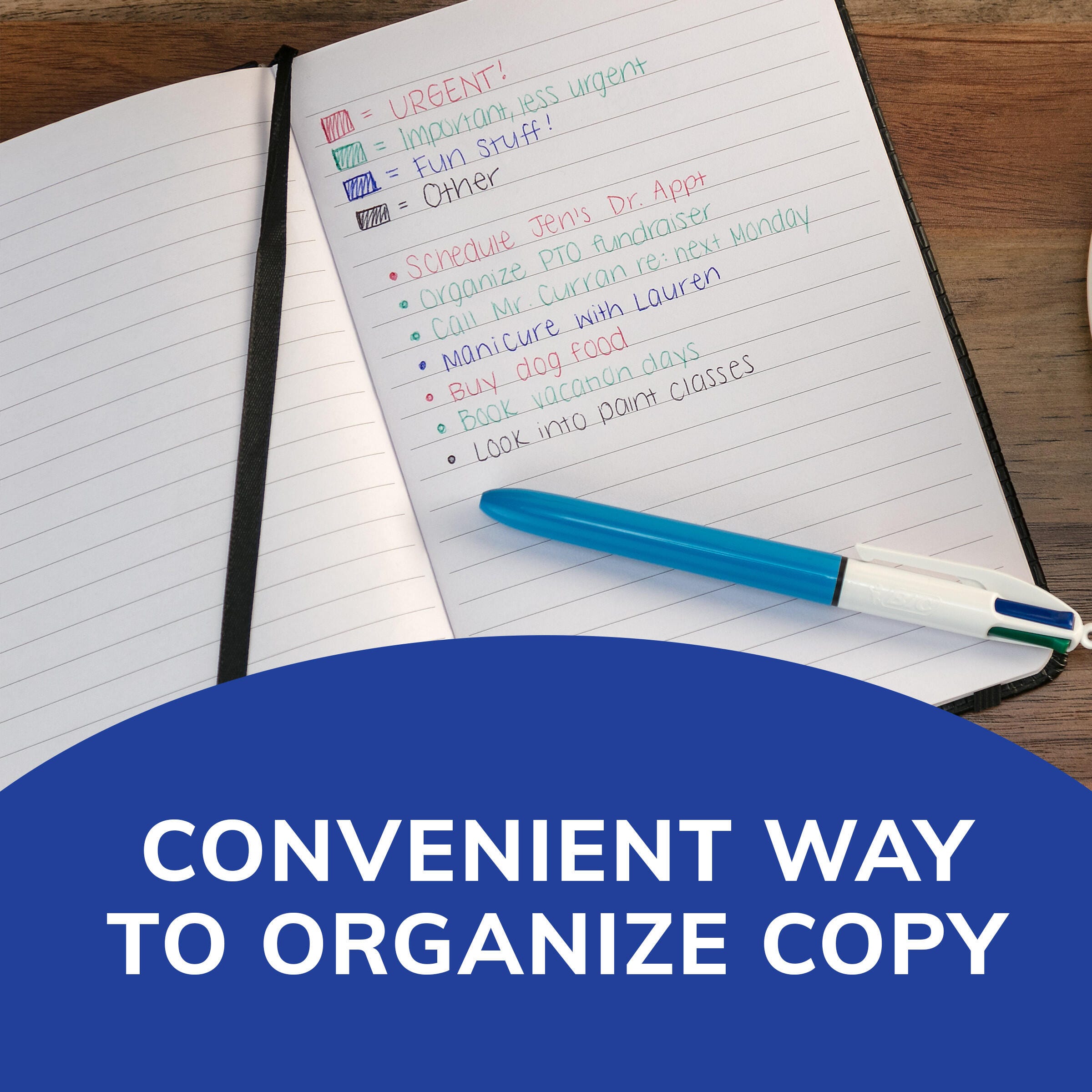 Four colors on 1 pen is a budget-friendly and hassle-free way to color-code your notes