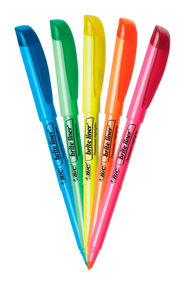 BIC Brite Liner Highlighter, Chisel Tip, Assorted Colors, Set of 5