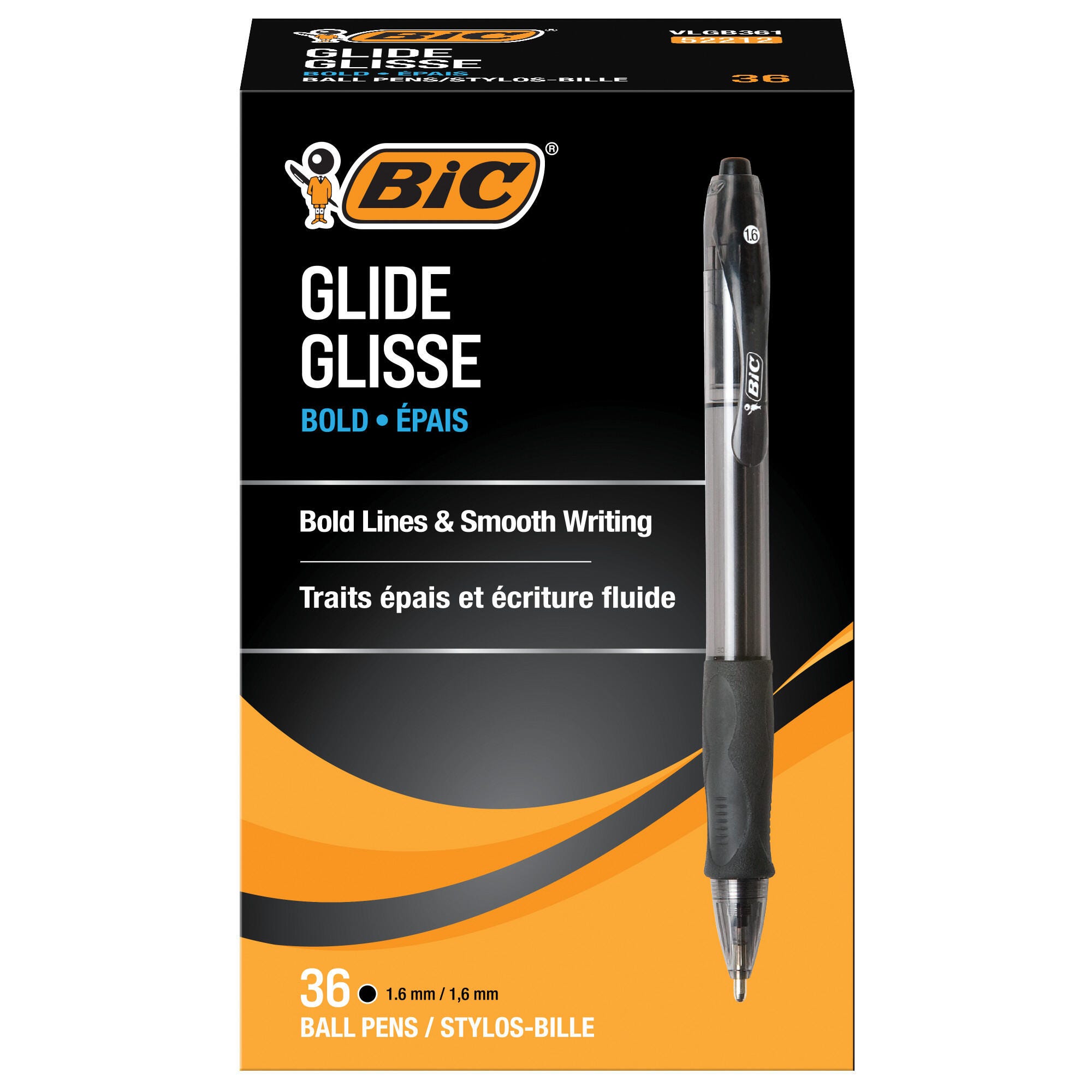 BIC Glide Bold Retractable Ball Pens, 1.6 mm, Black, Pack of 36