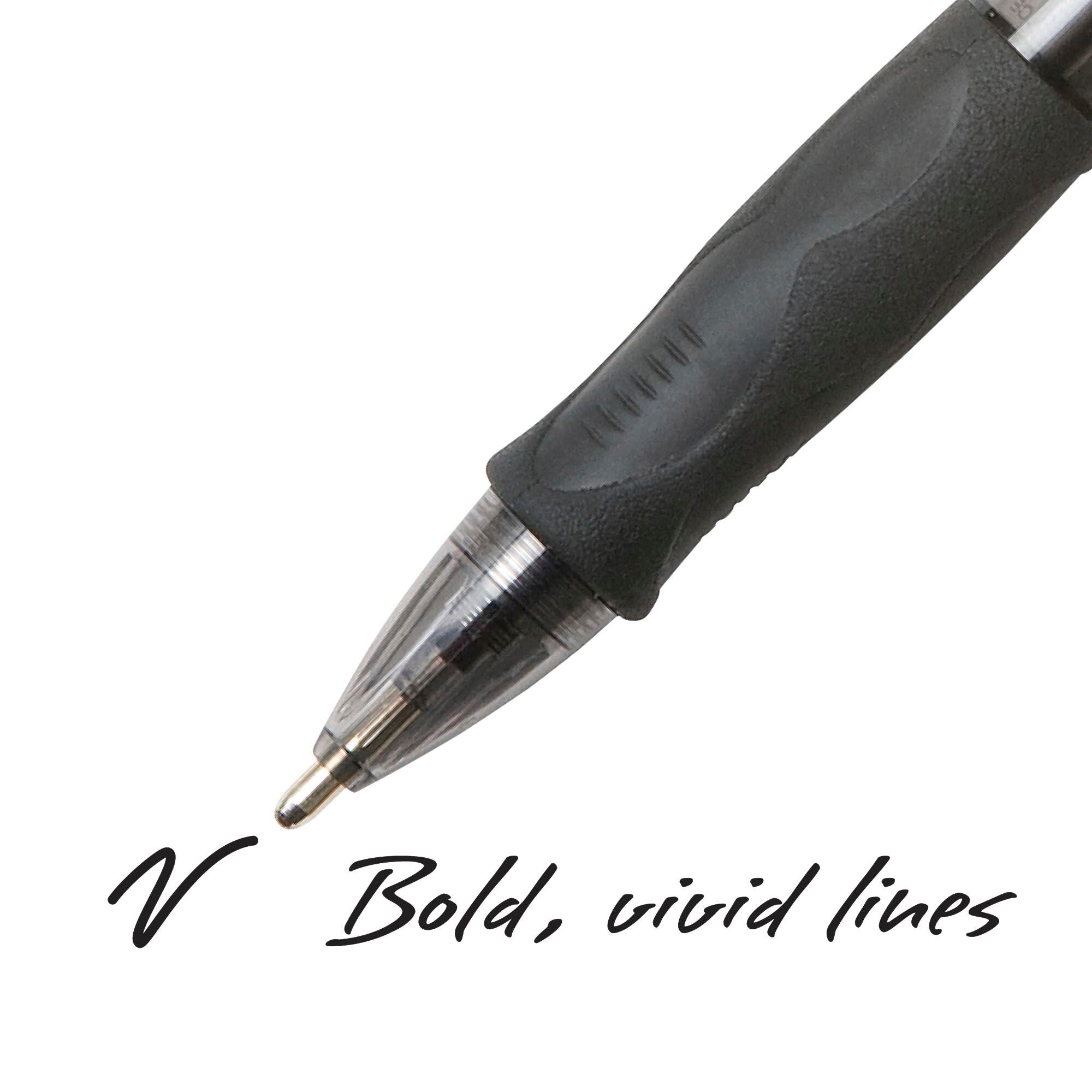 These ball pens feature the Easy-Glide System, BIC’s exclusive ink technology for smoother writing and bolder, more vivid lines. Semi-translucent barrel matches ink color. Use plunger at top to retract the 1.6mm bold point. Barrel also features a contoured rubber grip for comfort and control, and a handy clip to attach pen to notebooks, pockets and more.