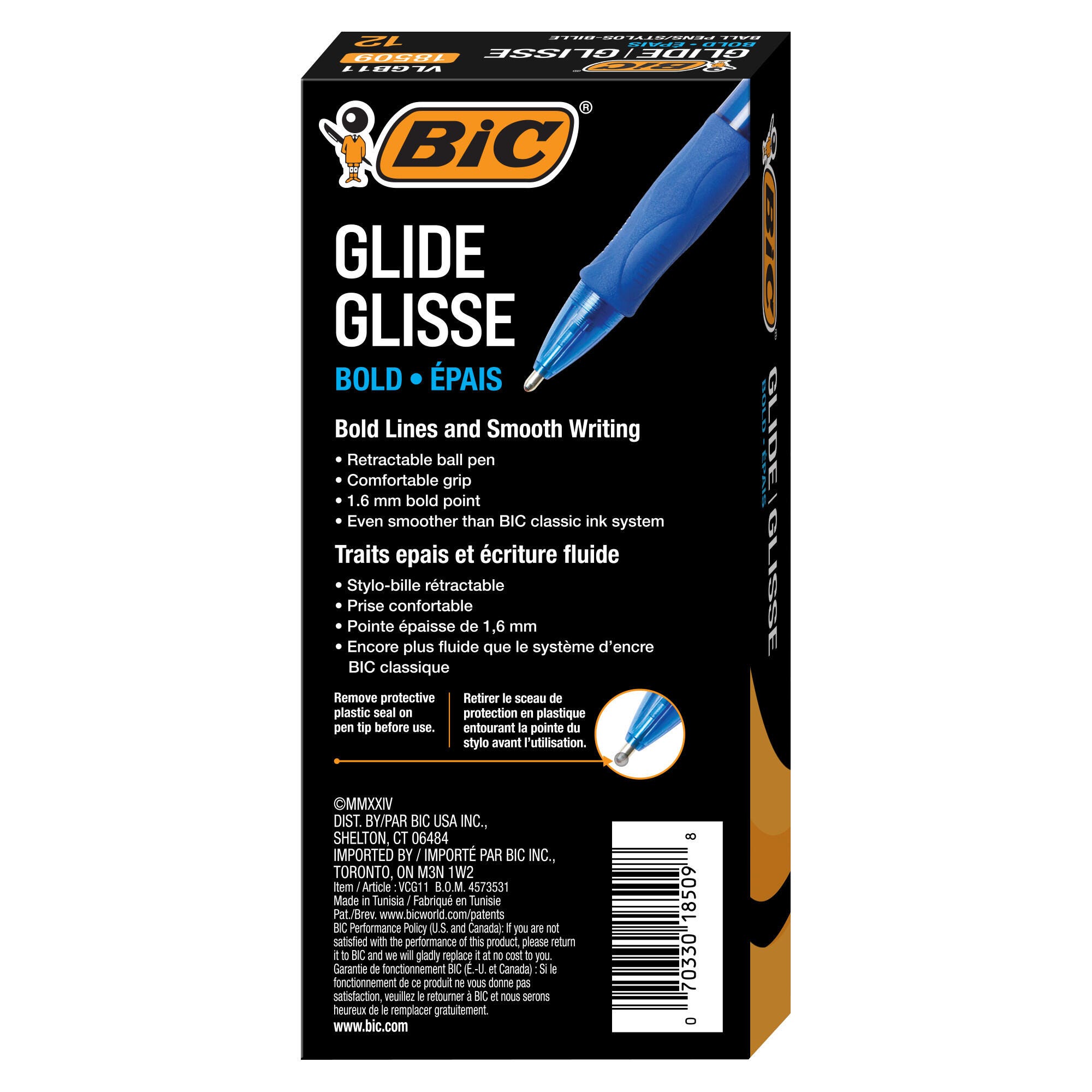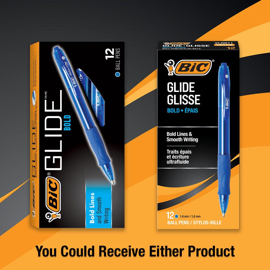 BIC Glide Bold Retractable Ball Pens, 1.6 mm, Blue, Pack of 12