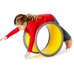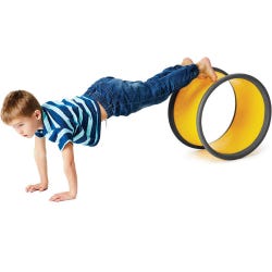 Get the body moving with this exercise wheel made of fiberglass, reinforced plastic, and a soft rubber rim to protect fingers and floors. Crawling, reaching, climbing, rolling, and creating towers and tunnels are all fun activities to get going. Develop agility, strength, and balance along the way with this 11-4/5 x 18-1/10 inch wheel. This yellow wheel can support up to 220 pounds.Features