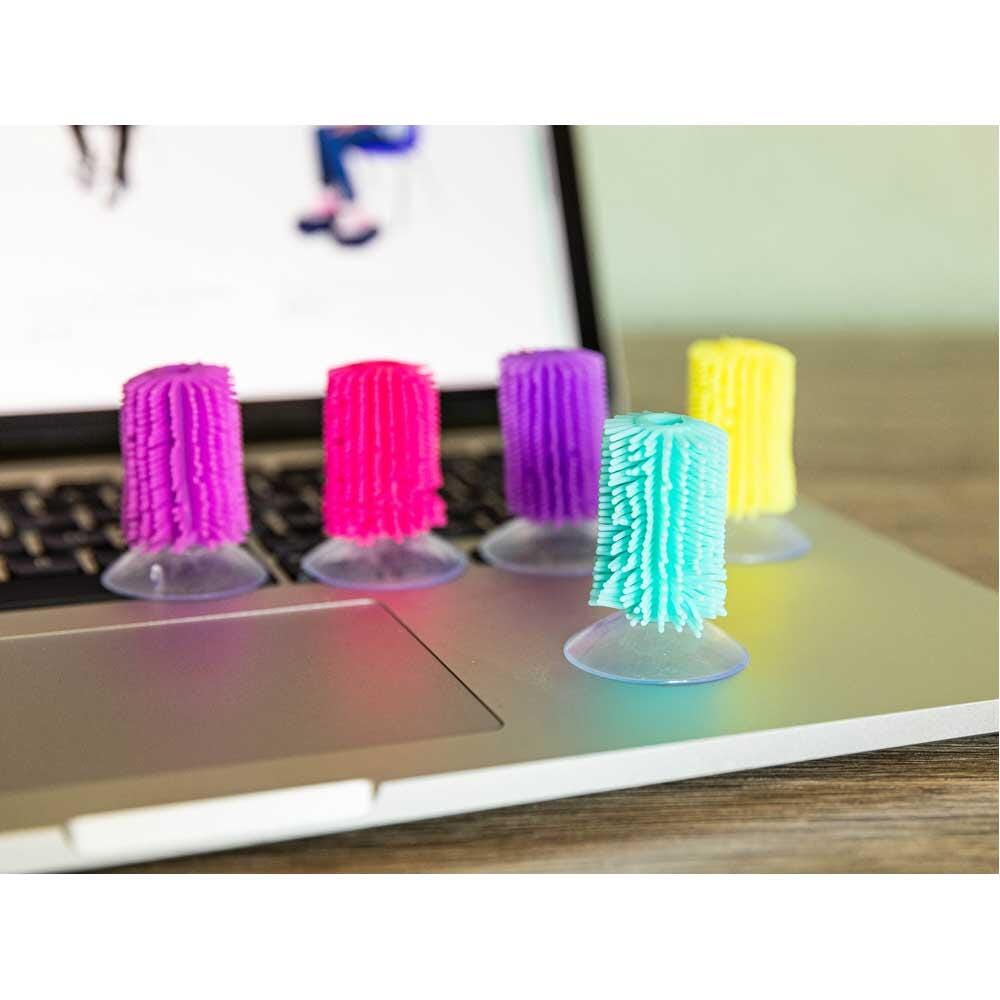 A silent and satisfying sensory fidget for everyone in your classroom, and even for you! This Flick Stick by Bouncyband® is designed to help reduce tension and relieve anxiety and restless energy for people of all ages! Flick Sticks are made with soft, flexible knobby strands and are set a suction cup that adheres to most hard surfaces. Each Flick Stick measures 1 Dia x 2 H inches.Features
