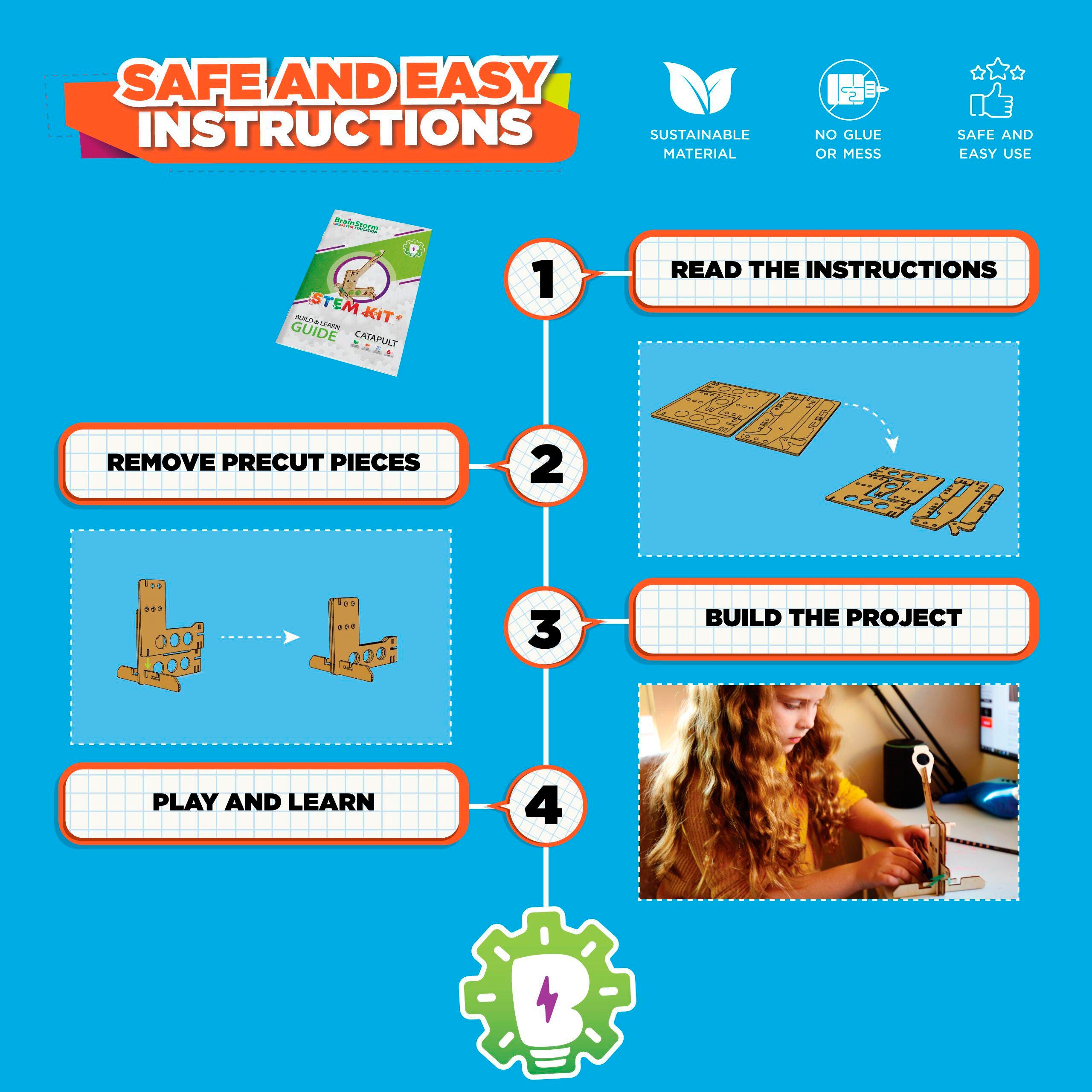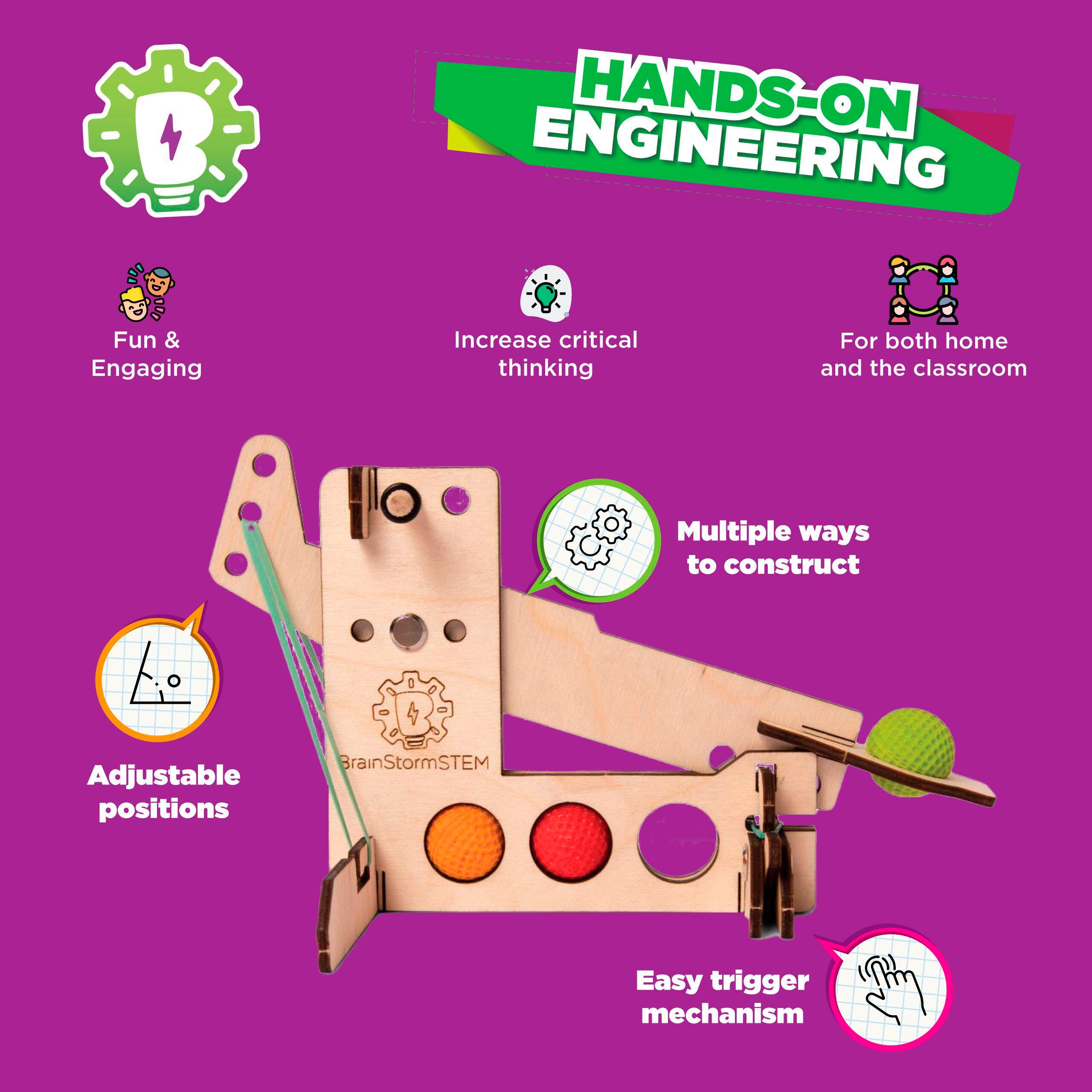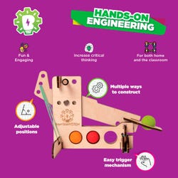 The Catapult Kit provides everything you need for a fun and successful STEM activity. The Catapult fires foam balls over 15 feet and students can use over 4 different adjustments to help them hit the bullseye!Features