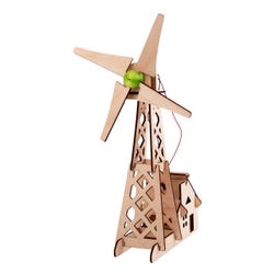 Teach students the rapidly growing world of green energy and sustainable engineering. Use wind or a fan to spin your wind turbine and produce electricity to power the light for a mini home.Features