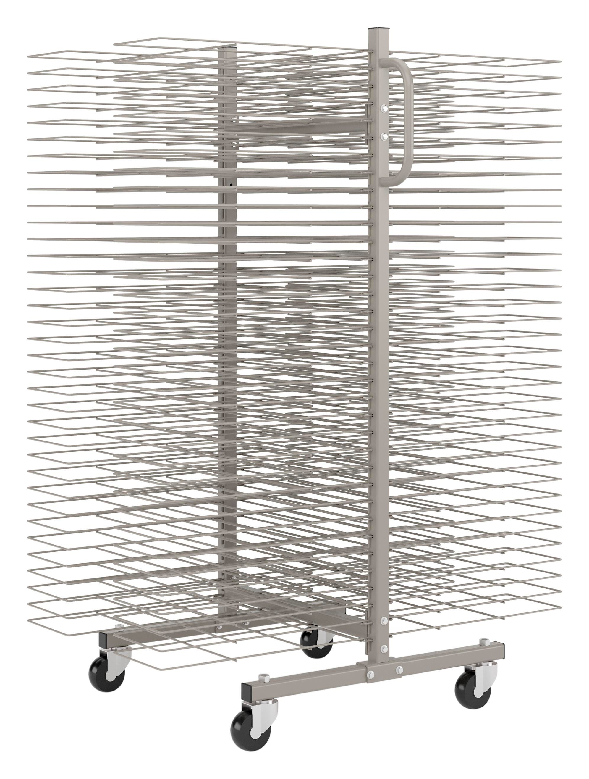 - Art rack with 70 removable wire trays allows ample and customized space for documents, art pieces, and more