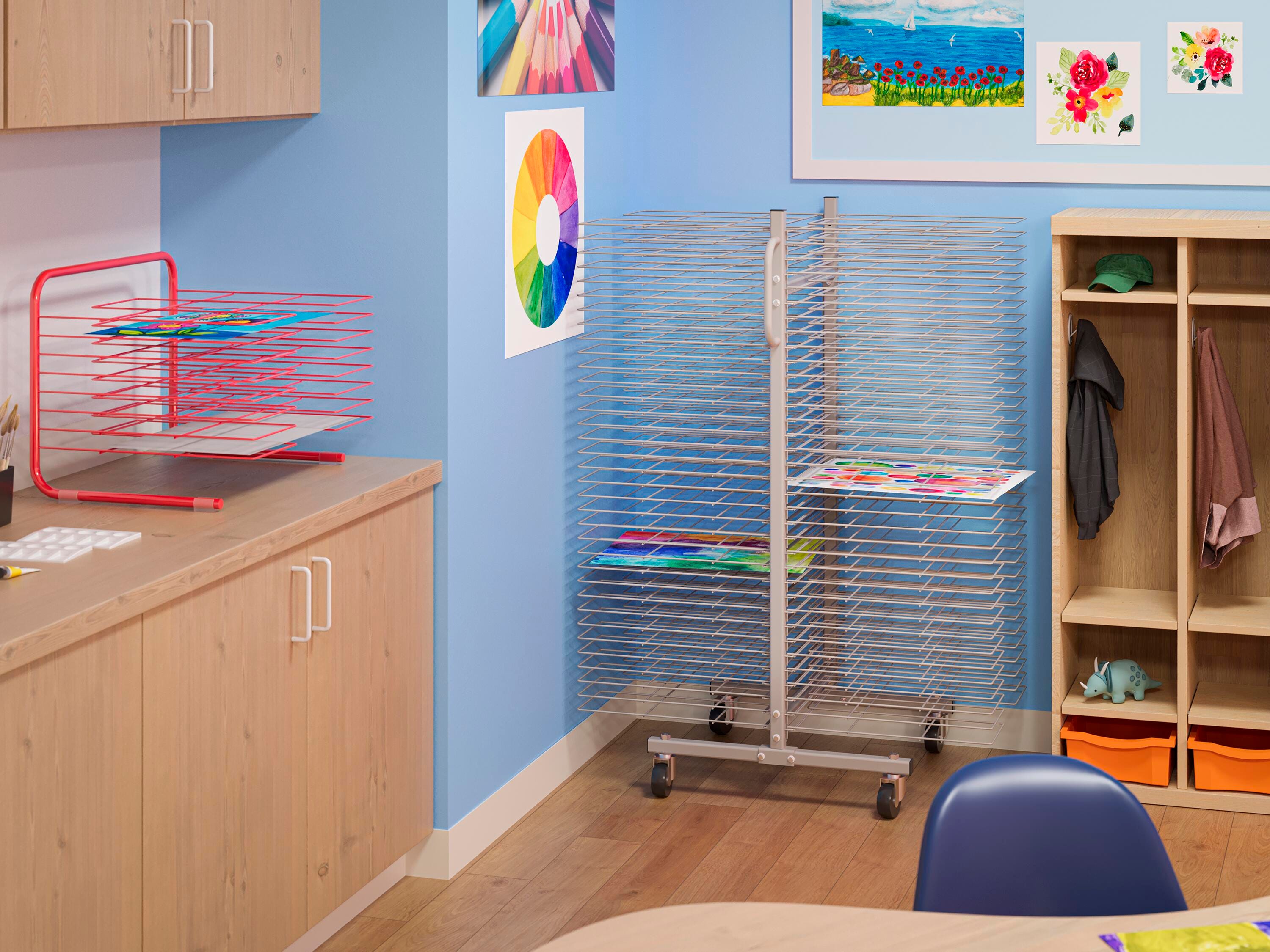 Save space in your classroom or studio (and store up to 70 paintings and artwork pieces) on this drying rack that comes with removable shelves and easy-roll casters for seamless transportation.
