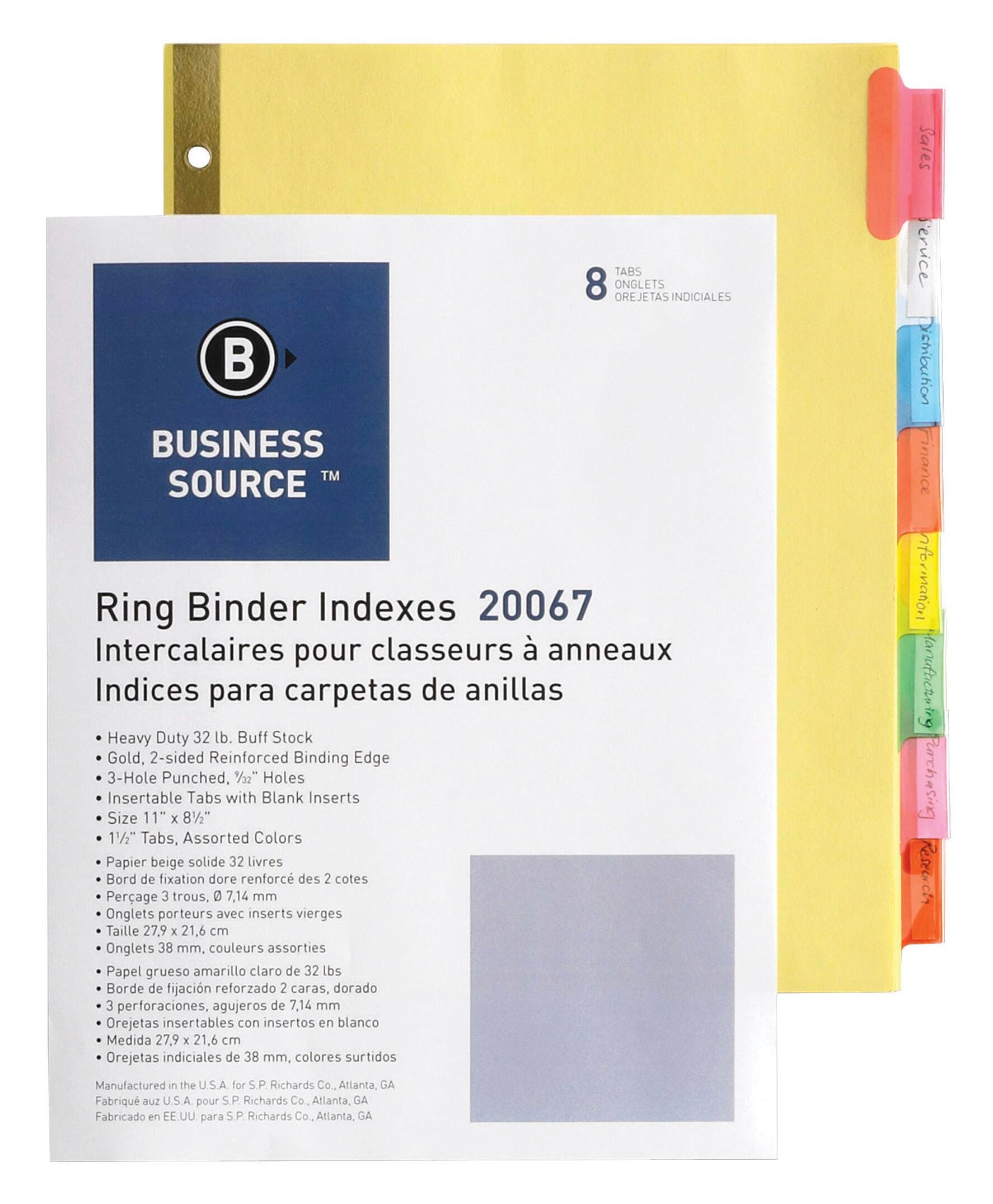 Business Source Insertable Tab Indexes, 8 Tab, Buff Paper, Multi-Color Tabs