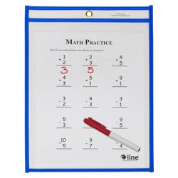 These Reusable Dry-Erase Pockets from C-line allow students to practice their skills while you save time, money, and paper. The handy pockets offer an eco-friendly option by eliminating the need to copy worksheets over and over again. They are designed for use with dry-erase markers and are easily cleaned with a soft cloth or tissue. Each pocket measures 9 x 12 inches to fit standard letter-sized documents. This box contains 15 neon blue pockets.Features