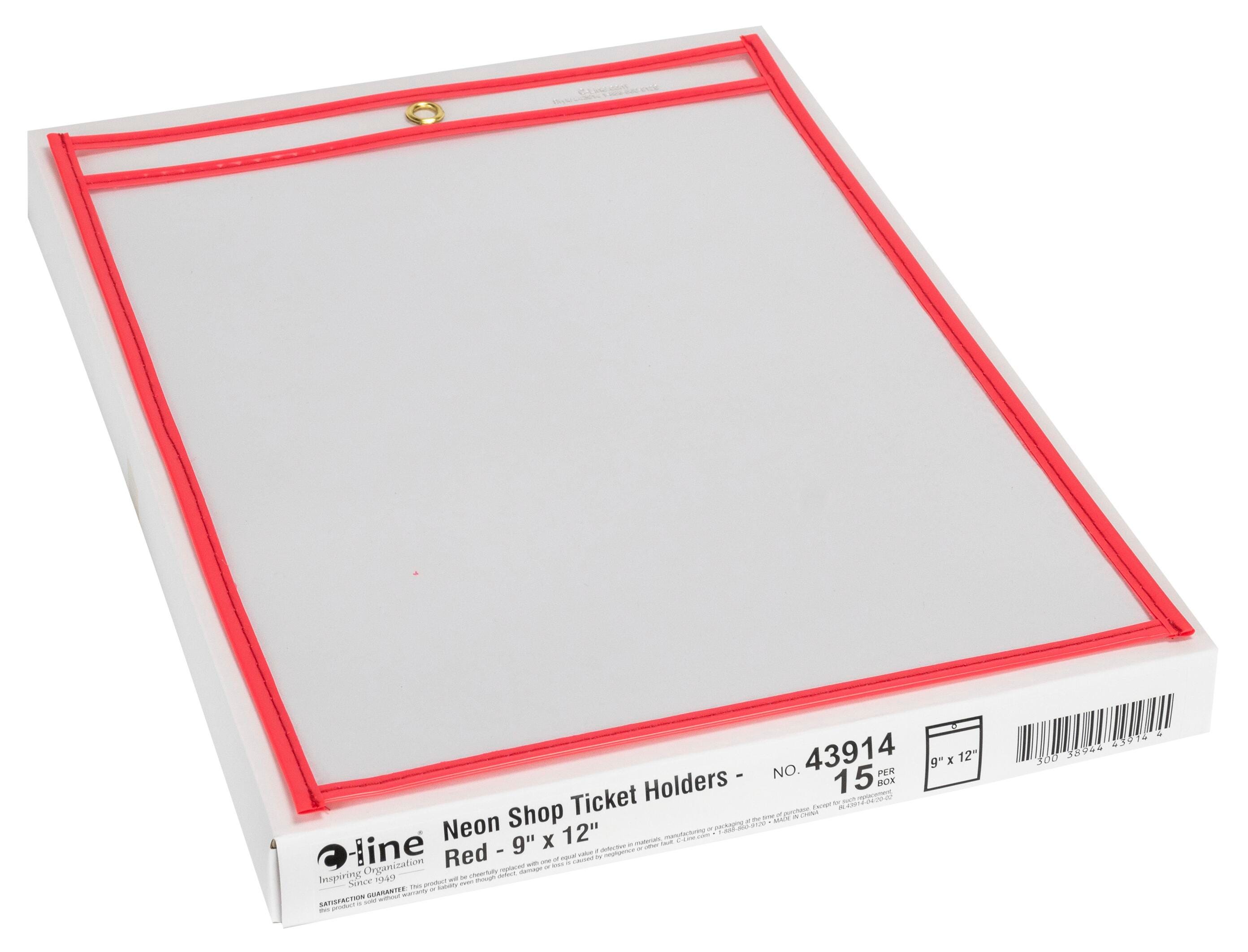C-Line Dry-Erase Reusable Pockets, Neon Red, 9 x 12 Inches, Pack of 15