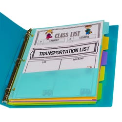 Acid-free polypropylene binder dividers store up to 8-1/2 x 11 inch documents and smaller. Write-on index tabs allow you to instantly categorize your binder and label each section to make it easy to reference. Use a pencil, ballpoint pen or permanent marker to label each tab. Each page divider features two pockets making it possible to organize pages, business cards and more. Bright color assortment includes green, orange, purple, turquoise, and yellow.Features