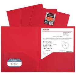 These two-pocket heavyweight polypropylene portfolio folders keep paper safe and are strong enough to resist tearing. They are able to hold 8-1/2 x 11-inch sheets of paper. Each folder features a business card slot. Does not include 3-hole punching or prongs. Sold as a pack of 25 red folders.Features