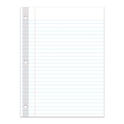 This pack of C-line Reinforced Filler Paper transforms binders and folders with the writing space you need. Each sheet is 3-hole punched with reinforced holes to add extra protection and help keep papers from tearing out of 3-ring binders. This wide-ruled, bright white paper is lined with margin space to facilitate neat writing and can be used for everything from daily to-do lists to class notes. Each page measures 8 x 10-1/2 inches to fit neatly in letter-size folders, files, and binders. This pack delivers 100 sheets of filler paper.Features