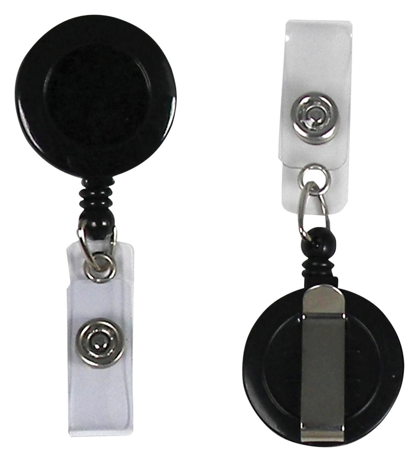 C-Line Retractable ID Badge Reel makes swiping IDs quick and easy. These black badge reels feature a steel clip that firmly attaches to belts. An automatic retractable 30 inch cord allows you to safely keep the cord out of your way, or easily pull it out when you need to scan your badge or ID card. Each reel has a clear vinyl snap-on ID strap for holding badges, identification cards and more. Come in a pack of 25.Features