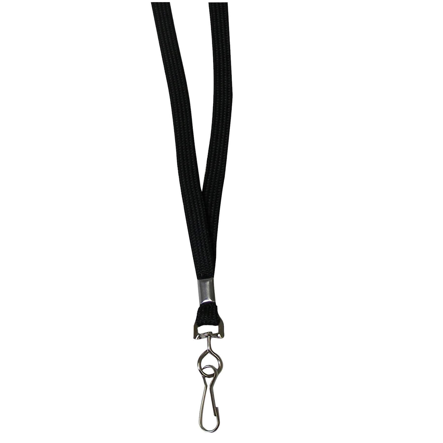 This classic style features round woven, nylon material, which proves to be comfortable when worn around the neck. The metal hook securely attaches the ID badge to the lanyard, allowing the badge to be displayed. Durable lanyards allow for the prominent display of badges and ID cards without damaging clothing. Round woven, nylon material with swivel hook attachment.Features