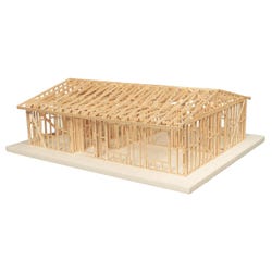 Features 9 working drawings of a home with 2 bedrooms, 1 bathroom, kitchen, hallway, dining room and living room with a truss roof. Dimensions relate to standard dimensions such as 2 x 4, 1 x 6, 2 x 8, 4 x 4, etc. with lumber cut to thousandths of an inch tolerances. Each kit is designed to teach students the principles used in real world house framing. Kit contains instruction booklet that explains purposes of each type of lumber and step-by-step pictures of house framing details. Optional refill kit contains replacement balsa and nails to allow you to reuse framing kit again and again at a fraction of the cost of a full kit. Components are framed as in a real house and students can construct some framing details on the working drawings.Features