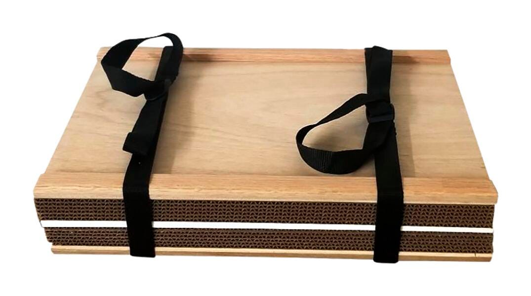 An extremely rugged yet economical plant press. Standard 12 x 18 inch size, it is constructed from two 1/4 inch plywood boards with hardwood strips reinforcing the sides. These hardwood strips are carefully beveled to prevent breakage and provide uniform compression on the specimens. Two straps with buckles, 12 ventilators, and 12 driers are supplied.