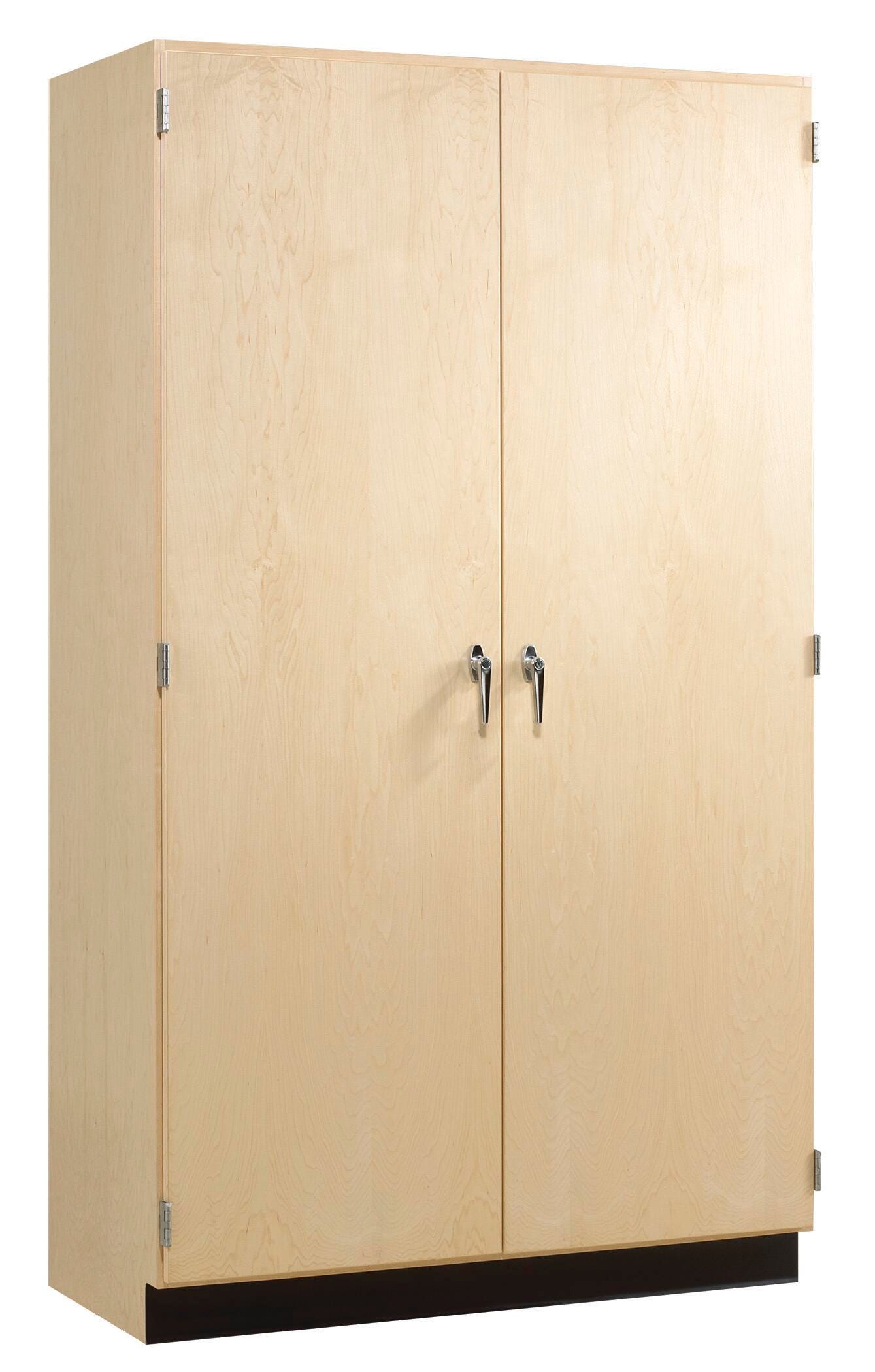 Diversified Spaces Tote Tray Cabinet measures 48 W x 22 D x 84 H inches. It is constructed from solid maple and maple veneers and has a natural, chemical resistant UV finish. The doors include 3-point locking handles. Features two hinged maple doors with 3 point locking handles. Cabinet includes 48 trays that measure 14-1/4 W x 19 D x 3-1/2 H inches. Limited Lifetime Warranty.