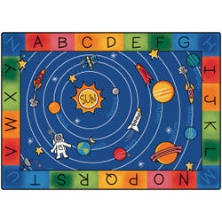Blast off to a galaxy of fun and learning! An alphabet border, perfect for Circletime, surrounds a picture of the Milky Way Galaxy. It features all 8 planets along with adorable space icons, stars, and dots representing smaller dwarf planets. KIDply Backing System features a revolutionary patented technology that assures your carpet looks better longer with dimensional stability. The backing helps prevent wrinkles, creases, and is unmatched in softness and flexibility providing you with quality performance in your area carpet.Features