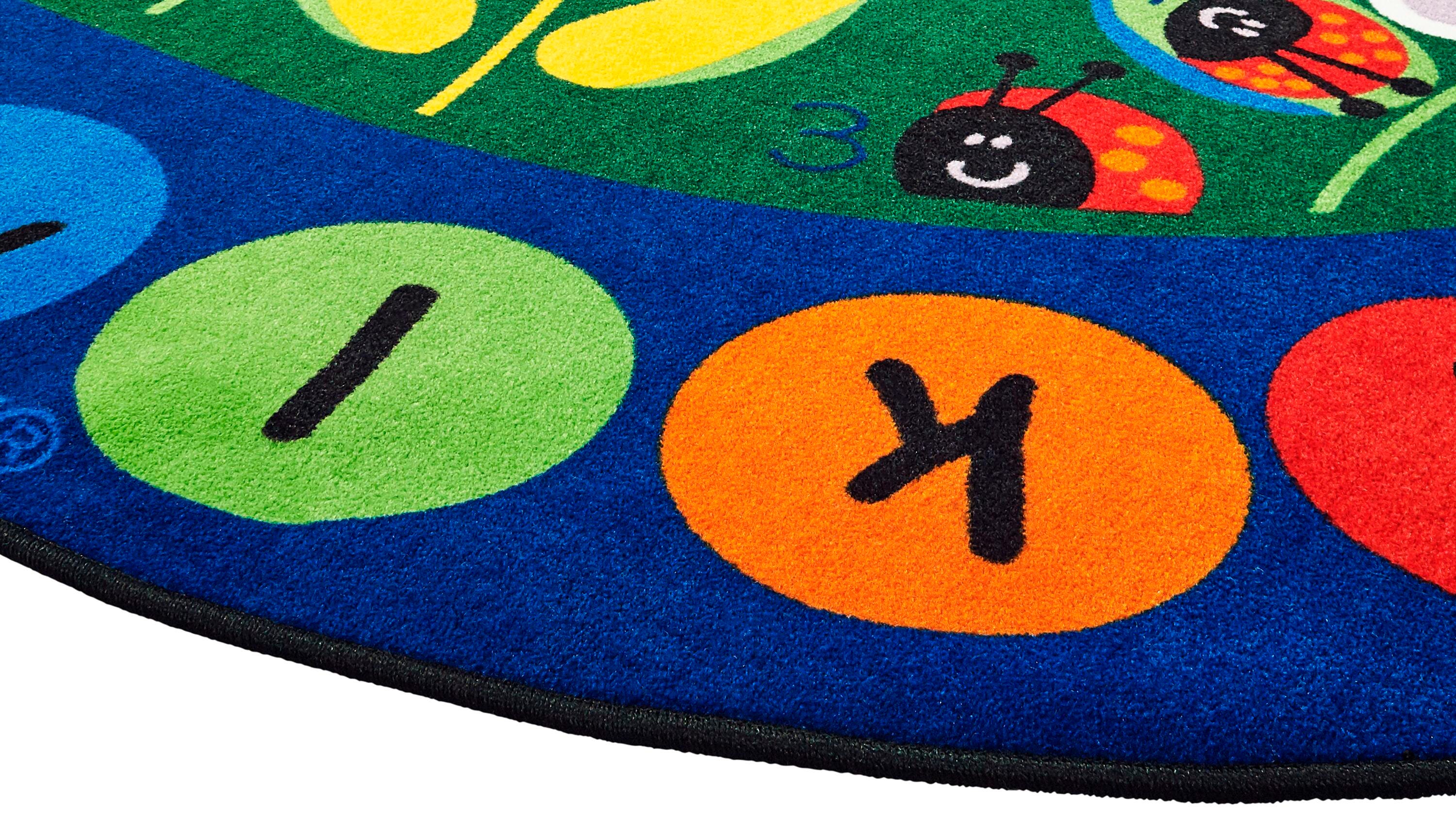 Ladybug friends bring number and letter recognition into the playroom, preschool, or classroom. Each ladybug has a number on its back for fun interactive counting design, with a colorful literacy border to introduce letters. Designed bright to be an aesthetic area rug, built stain-resistant and fade-resistant to be the perfect seating carpet for your functional, high-traffic space filled with little ones. This floor covering comes in a variety of sizes to best fit your space. Please select the size that best fits your space when ordering.Features
