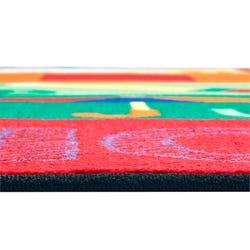 This educational carpet's border features bright upper- and lowercase letters in ABC order with a matching icon in each square. Numbers and shapes make this a great multipurpose educational carpet that can be used as an interactive seating carpet for students learning ABCs. Ample space for seating - for circle time, storytime, or simply as a spot to gather. Made with true stain blocker technology that makes clean-up a cinch using only hot water extraction with no harsh chemicals necessary. All of the fibers are completely saturated with the stain treatment. This oval carpet is available in several sizes to best fit your space. Please select the size that fits your space best when ordering.Features