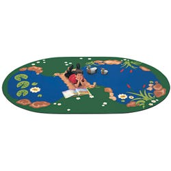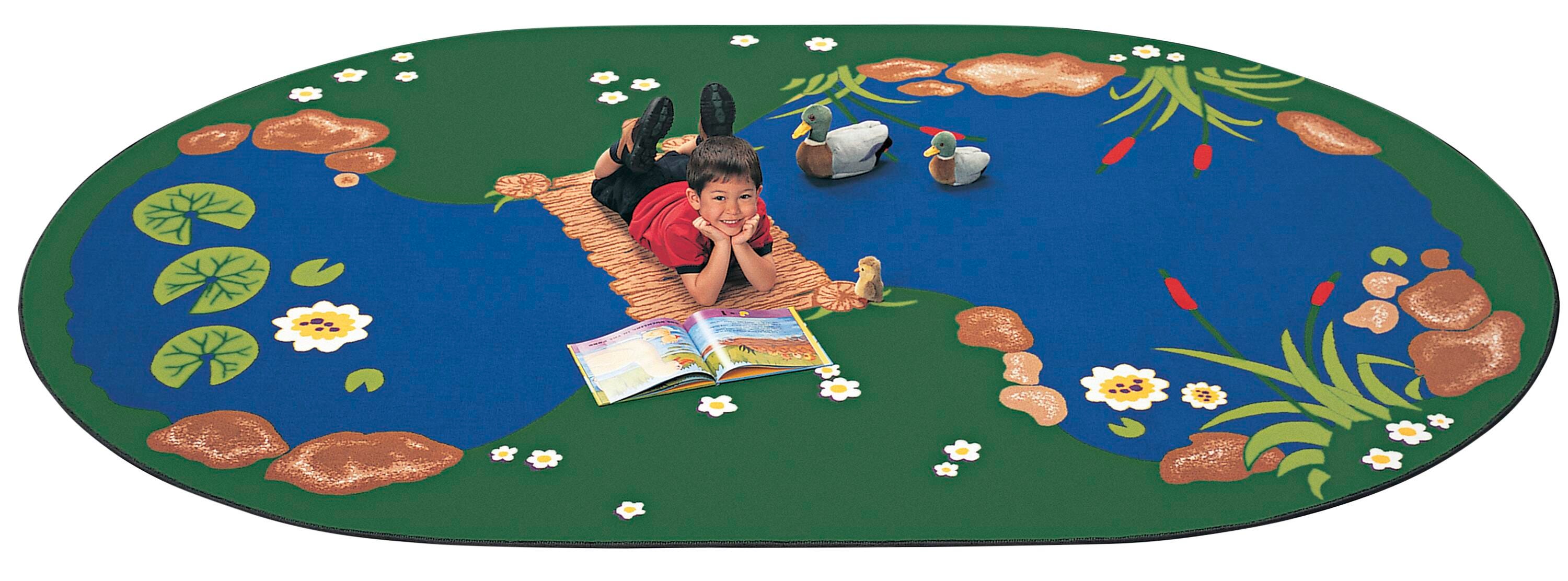 When it’s time to settle down, what could be more soothing than gathering around The Pond? The cool, calming colors and simple, broad design create the perfect home for storytime or circle time in preschools, childcare centers, classrooms, or playrooms. Tough to withstand high-traffic areas, yet soft to support your littlest learner. Made with true stain blocker technology that makes clean-up a cinch using only hot water extraction with no harsh chemicals necessary. All of the fibers are completely saturated with the stain treatment. This oval carpet is available in several sizes to best fit your space. Please select the size that fits your space best when ordering.Features