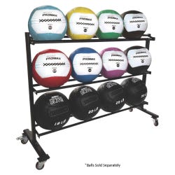 This Champion Sports 3-Tier Rack is designed to organize and store medicine balls, slam balls, and wall balls. It's a high-quality solution for any fitness facility, and keeps your space neat. It features 16 inches between each shelf, a sturdy steel construction, and rolling casters for mobility. This rack measures 62 L x 18-1/2 W x 45 H inches.Features