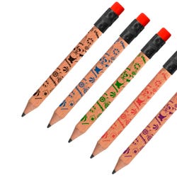 This pencil set for children has large pre-sharpened pencils for writing and drawing. Easy to hold and perfect for beginning writers with small hands. The jumbo barrel with medium point and 2B graphite core creates thick, dark lines. Each pencil is 4.7 inches long and 0.5 inch in diameter and weighs 5 ounces to help your child gain better control of their writing hand. Two sets with 5 pencils each, in colorful Panda wood finish.Features