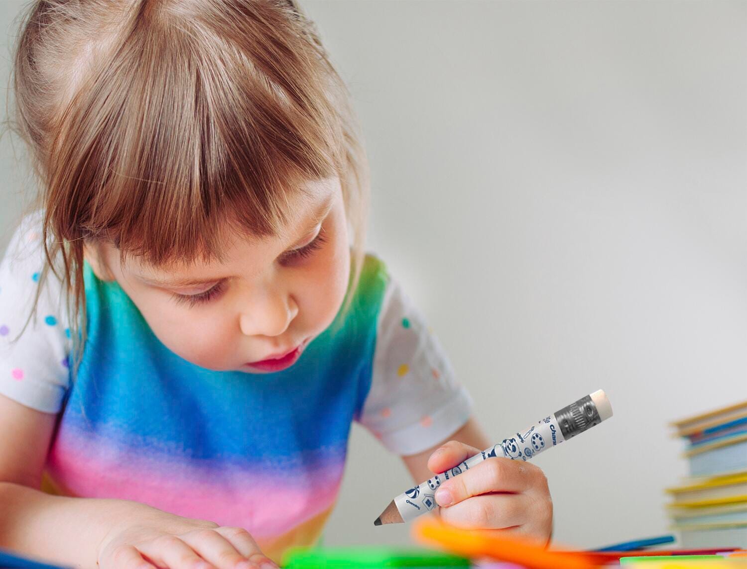 This pencil set for children has large pre-sharpened pencils for writing and drawing. Easy to hold and perfect for beginning writers with small hands. The jumbo barrel with medium point and 2B graphite core creates thick, dark lines. Each pencil is 4.7 inches long and 0.5 inch in diameter and weighs 5 ounces to help your child gain better control of their writing hand. Two sets with 5 pencils each, in colorful Panda white finish.