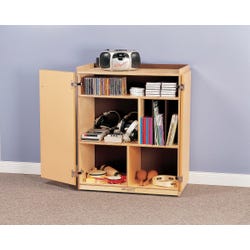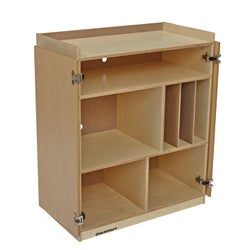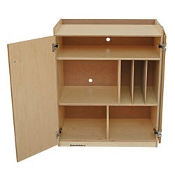 Childcraft® Mobile Audio Visual Center is a wooden AV cabinet ideal for classrooms, childcare centers, offices, and homes. Designed with both function and style in mind, the wooden cabinet features spacious shelving, covered doors for concealed storage, and flexible dividers for customizable configurations. Use this audio cabinet to store and organize stereo equipment, listening devices, books, storage trays, CD-ROMs, and more. Heavy-duty caster wheels provide smooth mobility, allowing you to move the mobile cabinet easily from one area to another. Comes fully assembled. The AV cabinet measures 30 W x 17-1/8 D x 36-3/4 H inches.Features