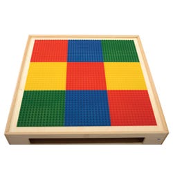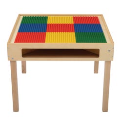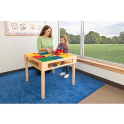 Childcraft® Block Table with Preschool Grid Top combines a spacious building grid with accessible storage to inspire endless imaginative play. The sturdy wooden construction ensures durability in classrooms, daycare centers, and playrooms, while the colorful grid top adds a fun, interactive element. Four open compartments under the activity table provide plenty of space to store building bricks and other supplies, making cleanup a breeze. Compatible with Lego Duplo and similar building bricks (bricks sold separately), this blocks table is perfect for group play or individual exploration. Grid colors may vary. The building table measures 32-1/4 W x 32-1/4 D x 24-3/16 H inches, providing a spacious grid surface for creative play.