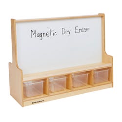 Encourage collaboration and hands-on play with this versatile dual-sided activity center featuring a preschool building grid, whiteboard, and clear tray storage.