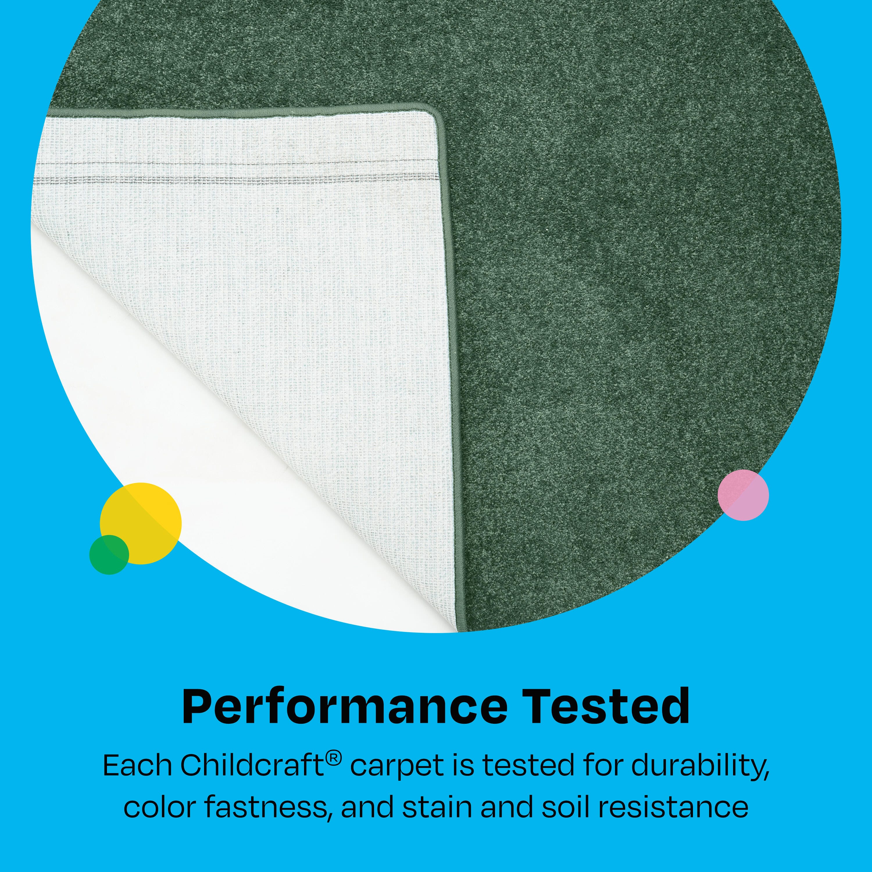 Built to last, Childcraft® Duralast Carpet for Classrooms offers the child-friendly protection you need with the lush quality and appearance your room deserves. This square carpet features a bold, colorful design and allows for abundant seating options on the floor. Our classroom carpet features exceptional softness with permanent stain and bleach resistance. Made of high-quality materials, the large carpet is great for everyday use for circle time, group activities, relaxation, and more. Each Childcraft® carpet is performance tested for durability, color fastness, and stain and soil resistance for quality you can trust. The Green Label Plus Certification also helps ensure the best indoor quality for a safe and healthy environment all year long. Please Note: Childcraft® carpets are custom designs that are made to order and are therefore non-returnable.
