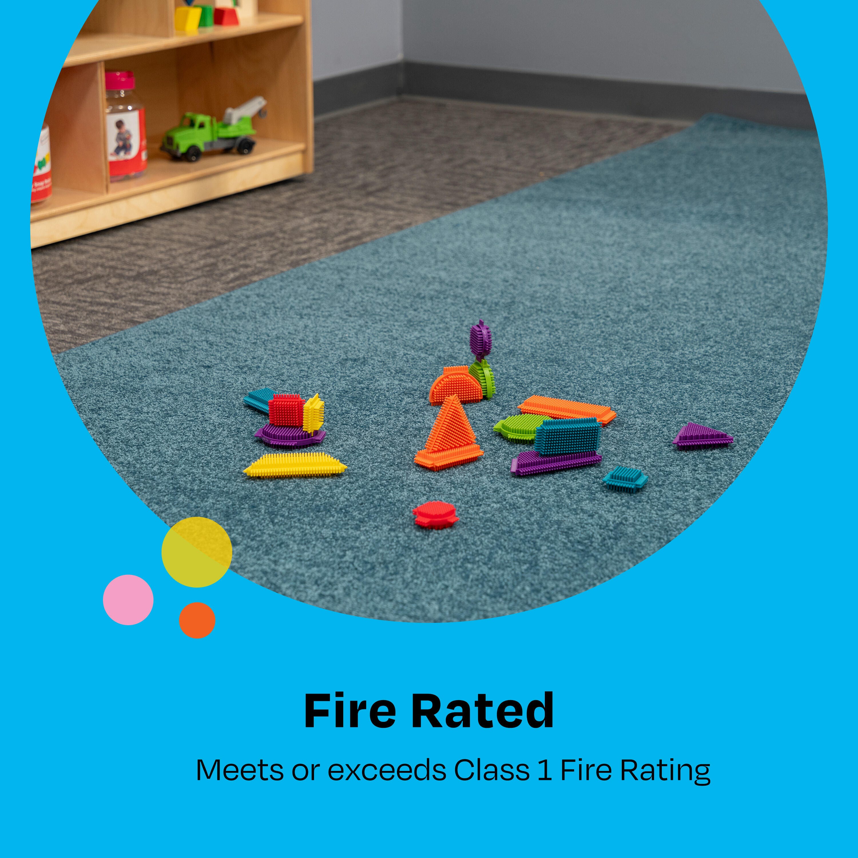 This carpet for classroom use meets or exceeds Class 1 Fire Rating