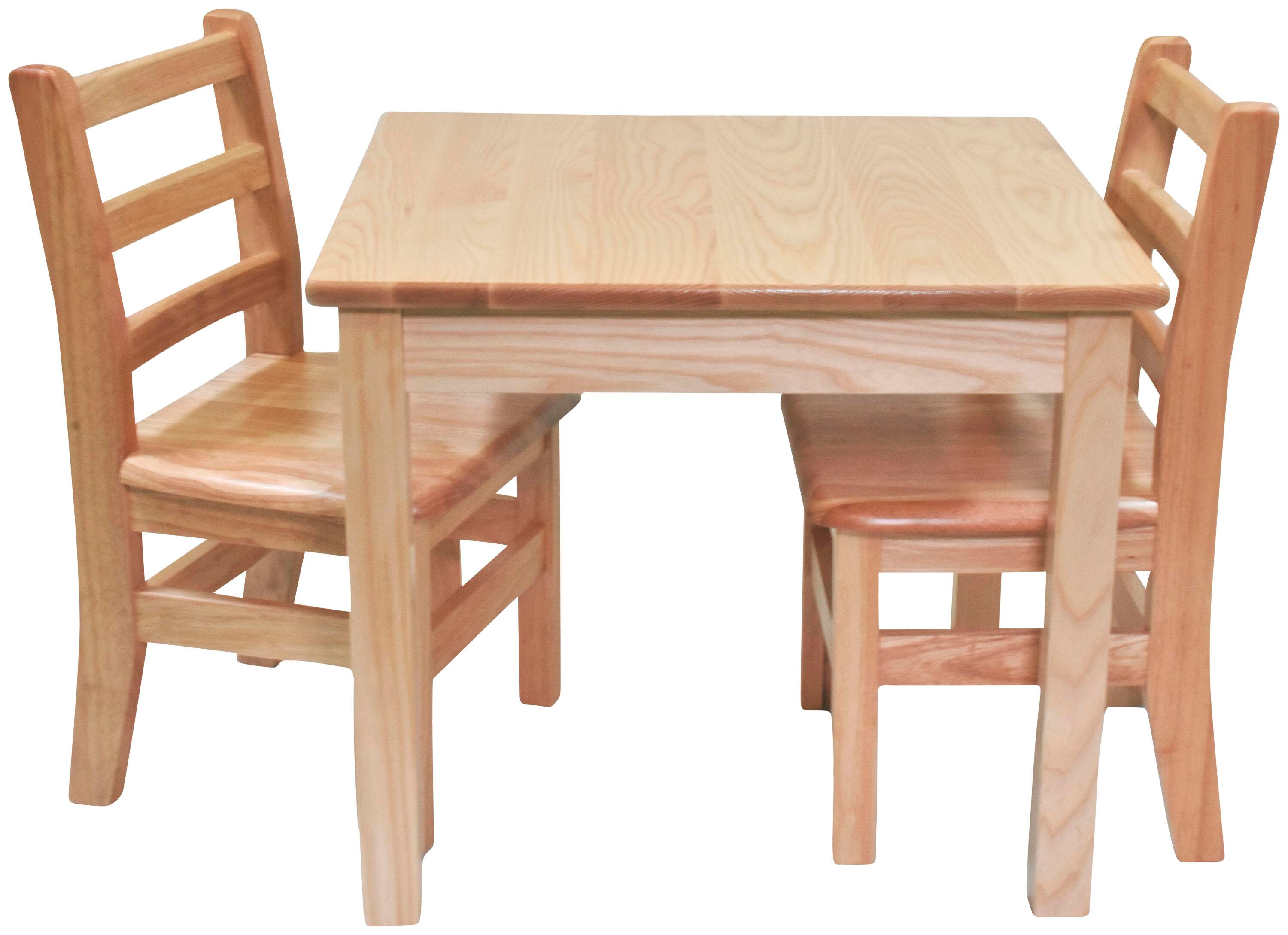 This Childcraft® Hardwood Table and Chair Set offers a sturdy and child-friendly workspace perfect for early childhood environments. Ideal for reading, art, and group activities, this set includes a square table and two 12-inch ladderback chairs. The children’s table is crafted with a solid maple apron and legs for long-lasting durability, while the smooth, clear-coated surface resists stains and is easy to clean. Sized for toddlers and young learners, this set encourages independence and collaborative play. The classroom table measures 24 W x 24 D x 20 H inches. Chairs arrive fully assembled; simple leg assembly required for table.Features