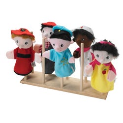 The Childcraft® Puppet Stand is a compact and convenient storage solution for up to 10 hand puppets. Featuring 10 vertical sticks, this wooden stand allows children to easily access and display their favorite puppets while keeping play spaces neat and organized. The smooth, rounded edges prevent fabric snags, ensuring gentle care for soft puppets. Made from durable birch plywood, this puppet holder has a natural finish that can be stained, painted, or left as is for a classic look. Ideal for early childhood classrooms, daycare centers, libraries, and home playrooms, this space-saving storage solution encourages dramatic play, storytelling, and imaginative learning. This storage unit measures 19-3/4 W x 5-3/4 D x 11-9/16 H inches.Features