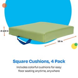 Childcraft Square Cushions, 15 x 15 x 2-1/2 Inches, Assorted Colors, Set of 4