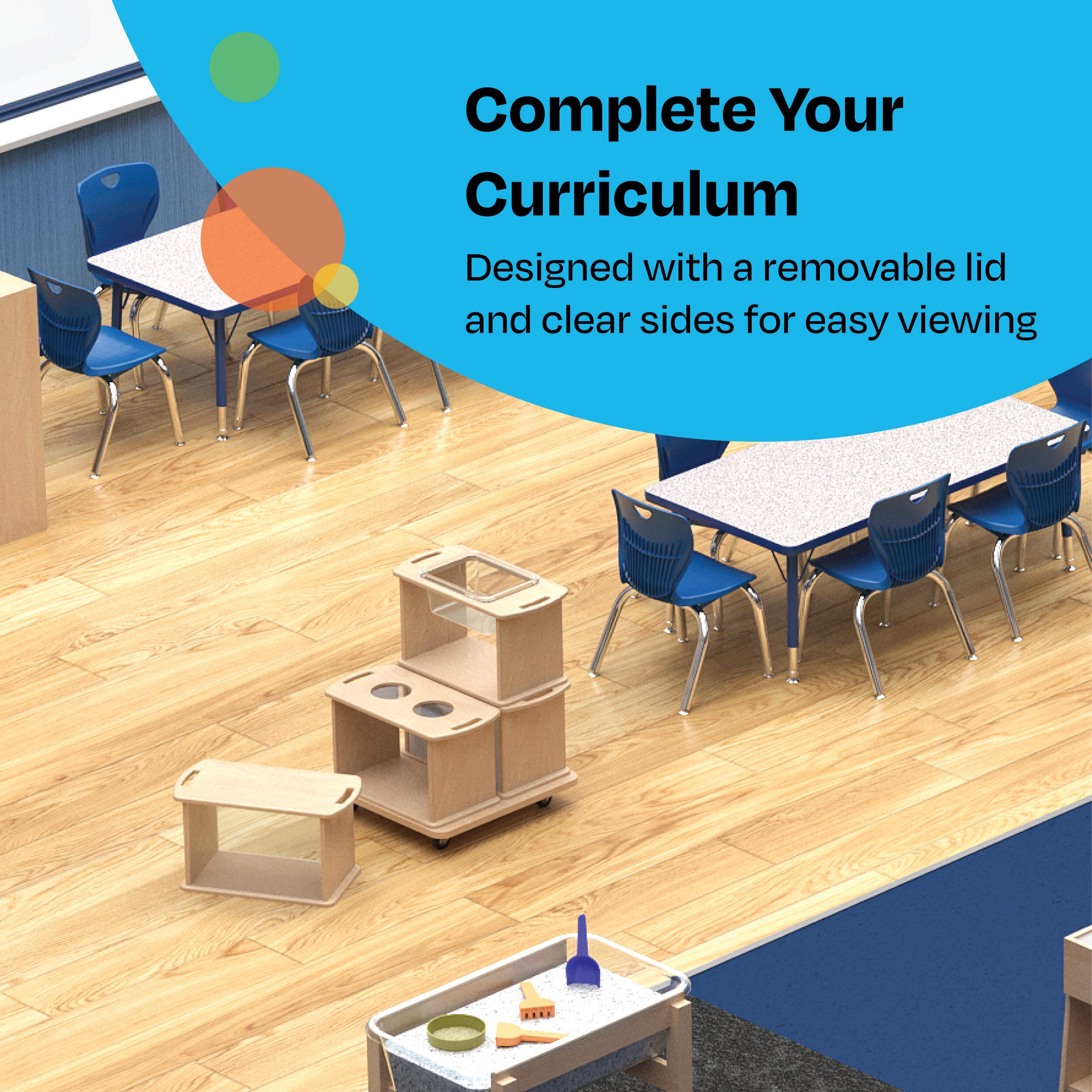 The sensory center has a removable lid and clear sides for easy viewing