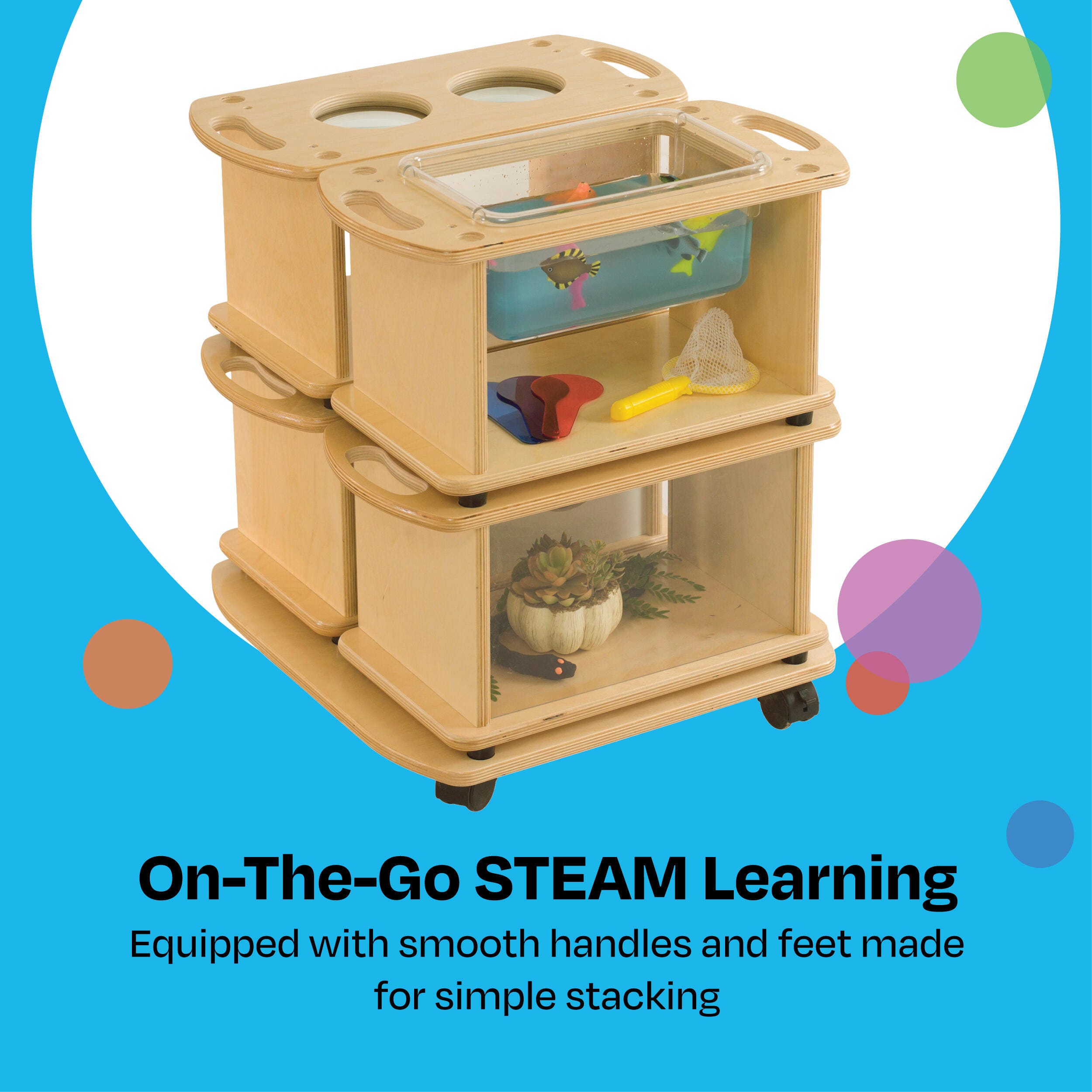 Additional items available and sold separately to complete the set: Soil and Water Module, Sensory Module, Magnification Module, and Storage Dolly