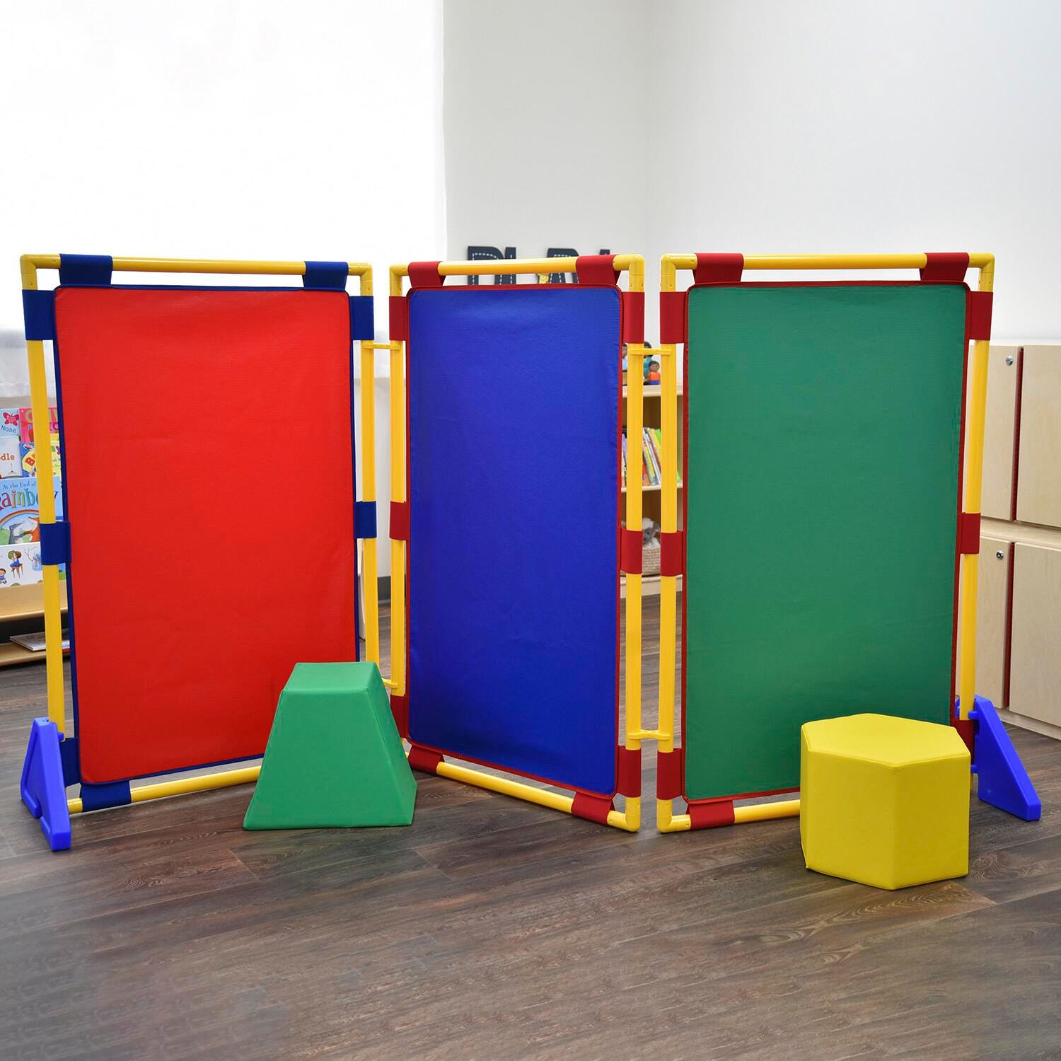 Room dividing panels serve a variety of purposes such as creating a quiet space for rest time or separating activities. Using dividers encourages children to focus on the lesson or activity at hand without distractions. Each panel easily attaches to another with double claw clips. Please order additional PlayPanel legs (sold separately) for every 3 panels.