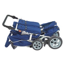 Make transporting children easier with the SureStop Bye-Bye quad stroller with SureStop brake system, made for moving from playground to early childhood care center with ease. The comfortable, padded seats hold children up to 40 pounds each and recline to 45 degrees. The stroller folds for storage when not in use. Stroller canopies are removable. Easy assembly is required. Measures 47 W x 33 D x 43 H inches.Features