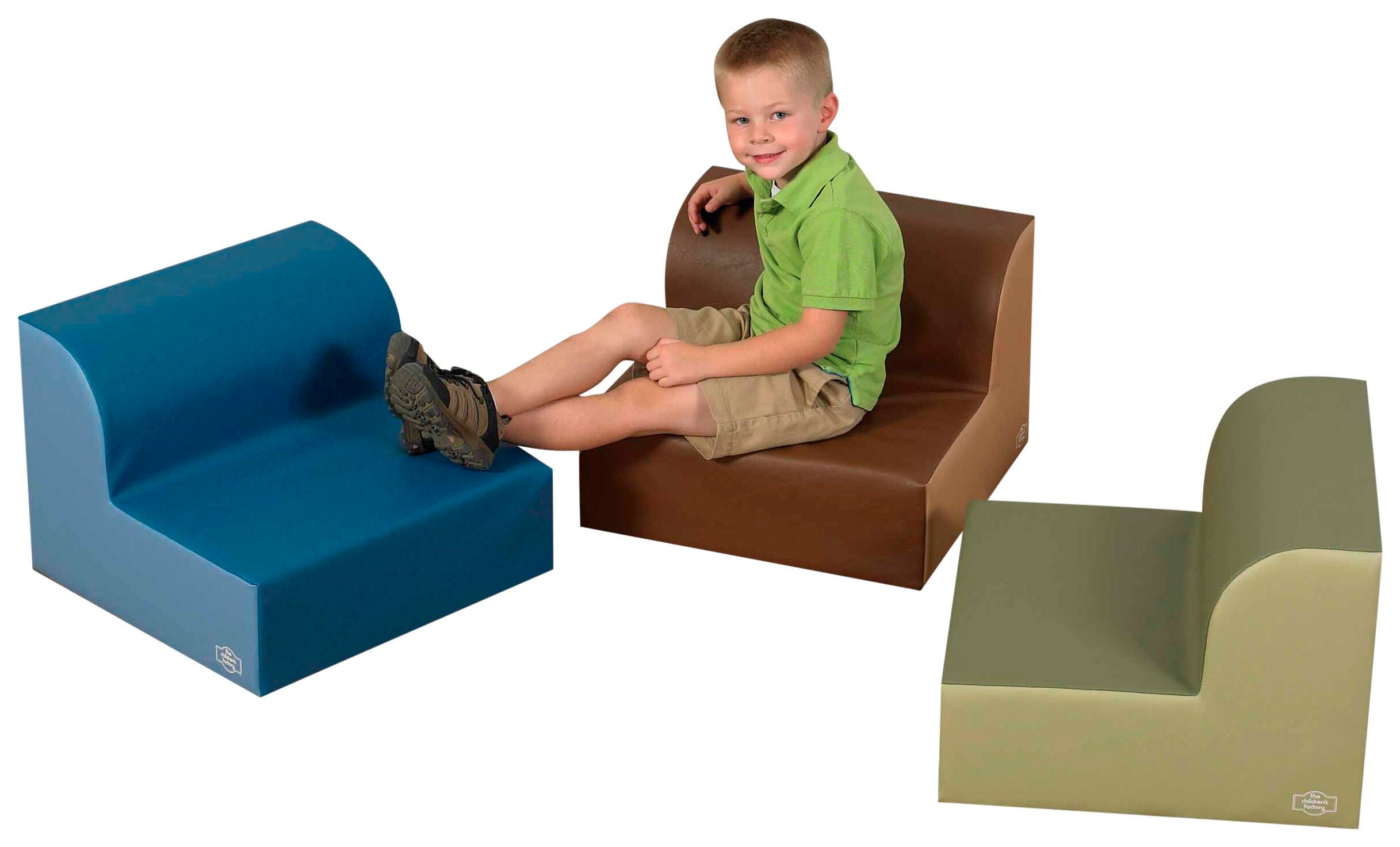 Create a space for young ones to read and relax anywhere with a soothing woodland color palette. From circle time to storytime to independent reading time, these floor chairs with back allow children to feel supported and comfortable. Give little ones a perfect place to enjoy story time. Children's Factory Library Trio seats measure 20 W x 20 D x 15 H inches, with a seat height of 7 inches.Features
