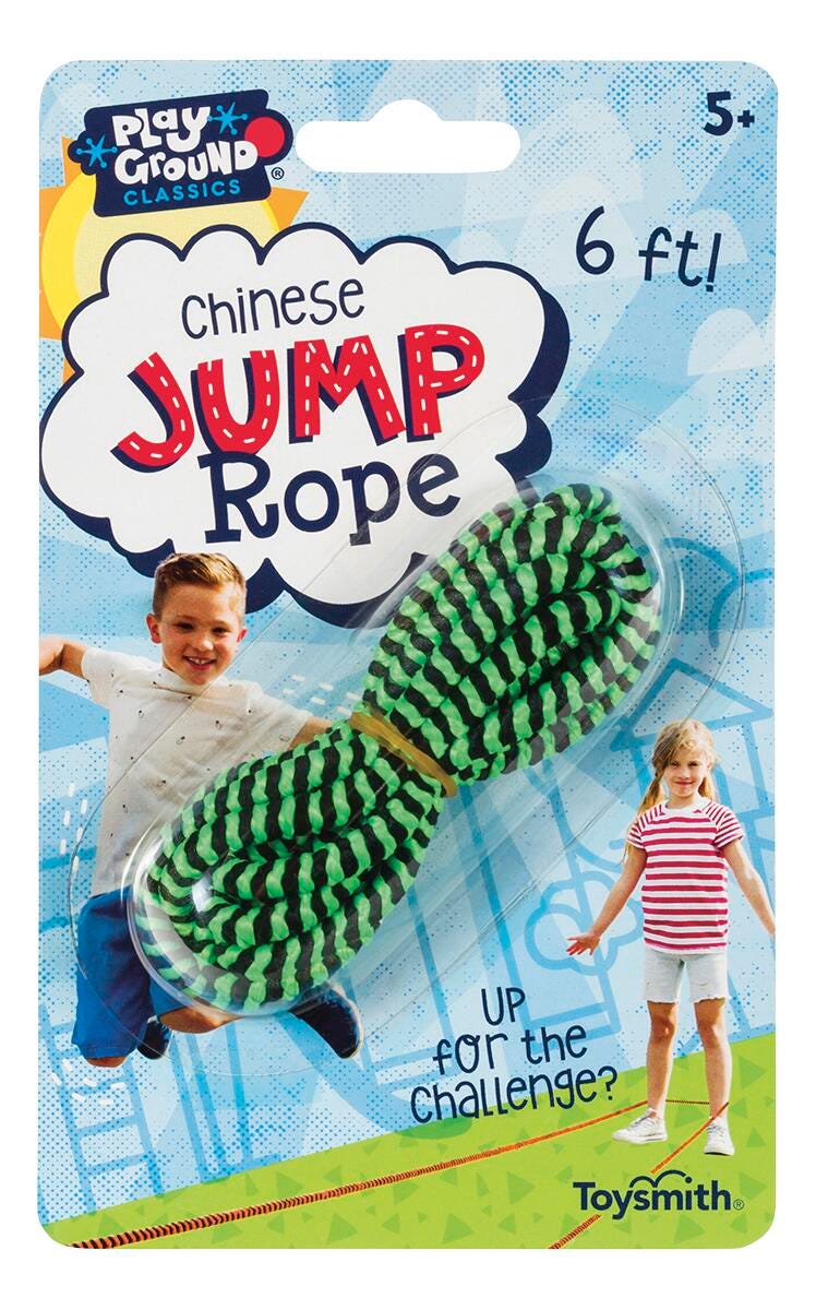 This 72 inch loop Chinese jump rope is brightly colored and comes with instructions for play. It's great for classroom activities that teach an understanding of shapes and sizes. Challenge your class with creative jumping skills or stretch the rope while you stretch your mind and body with giant triangles, rectangles, or any shape you create. Assorted colors. For ages 5 and older.Includes:
