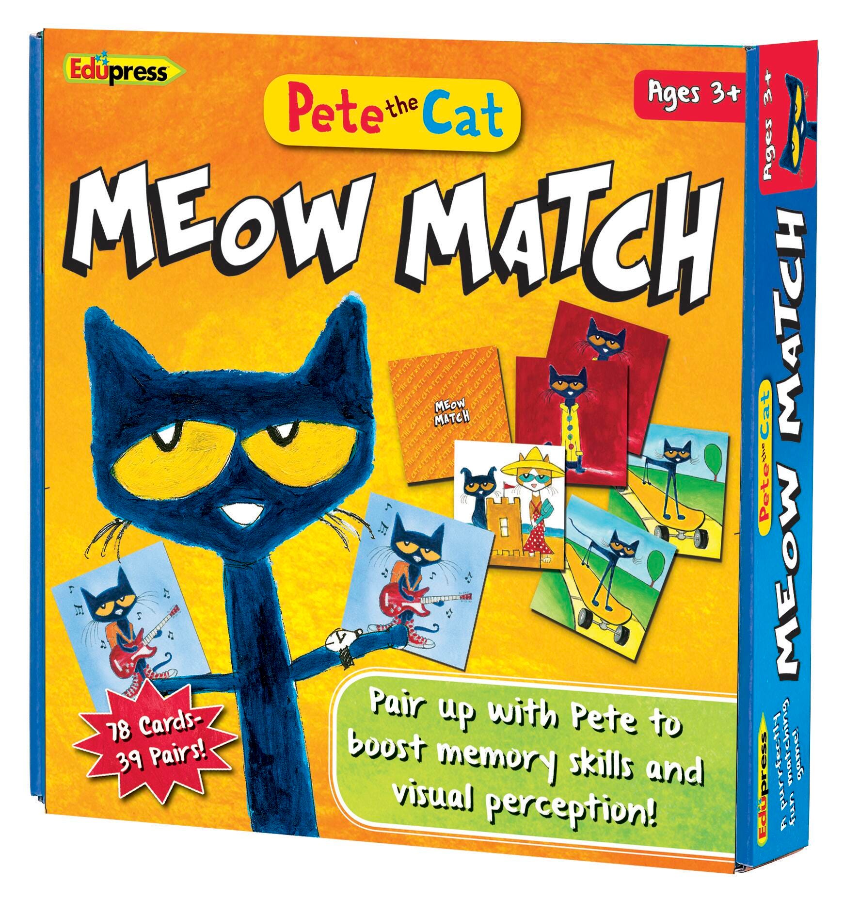 Edupress Pete the Cat Meow Match Game helps to boost visual discrimination and memory skills as the players flip over cards to make matches with Pete and his friends. Ages 3 and up.