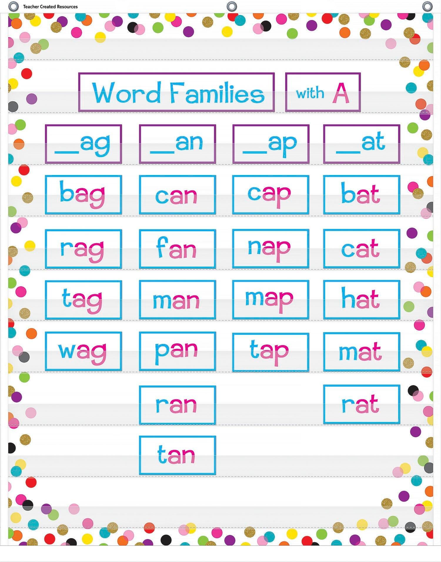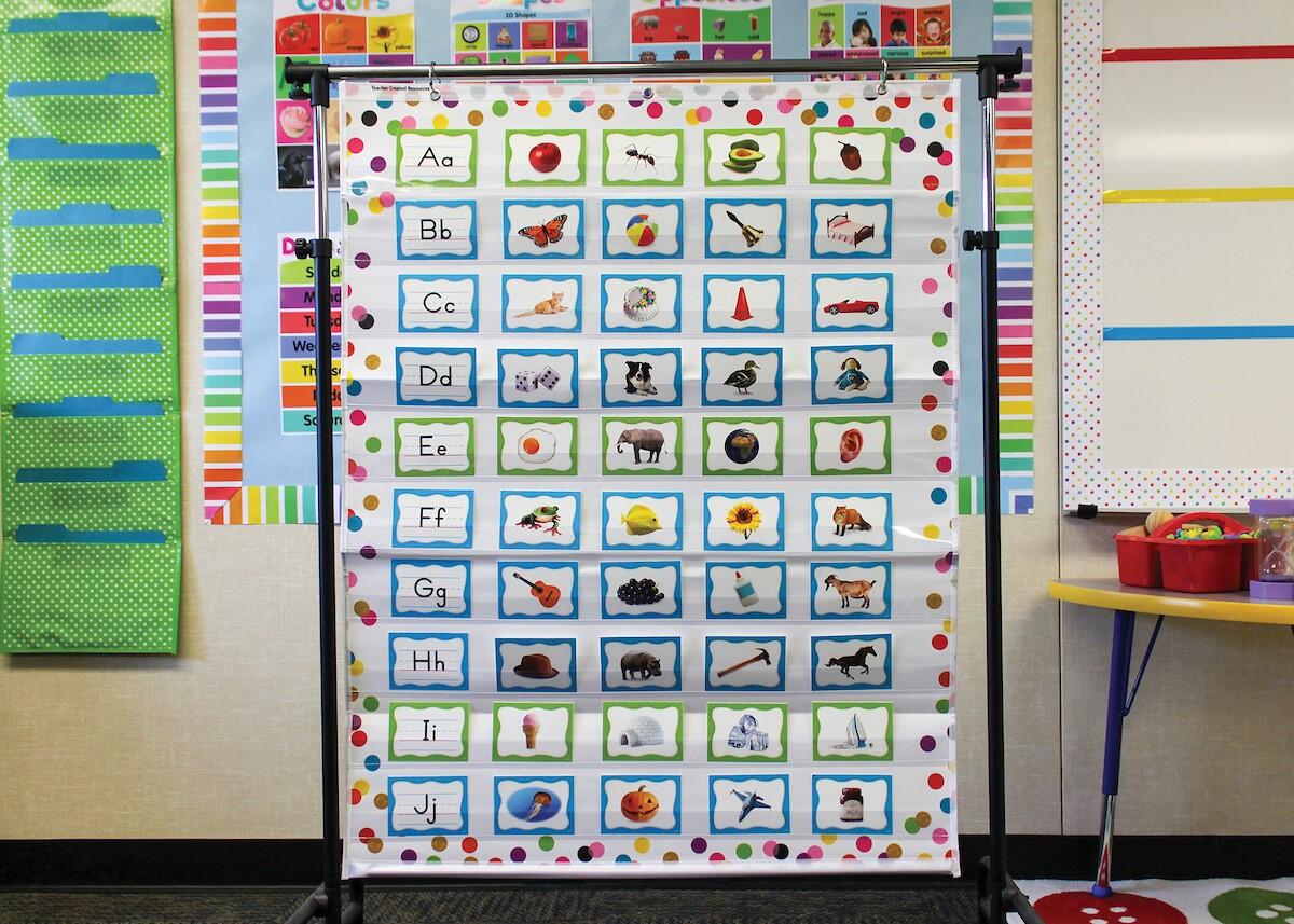 This lightweight and durable Confetti pocket chart features a colorful design and hangs easily from sturdy, metal grommets. Measures 34 x 44 inches.