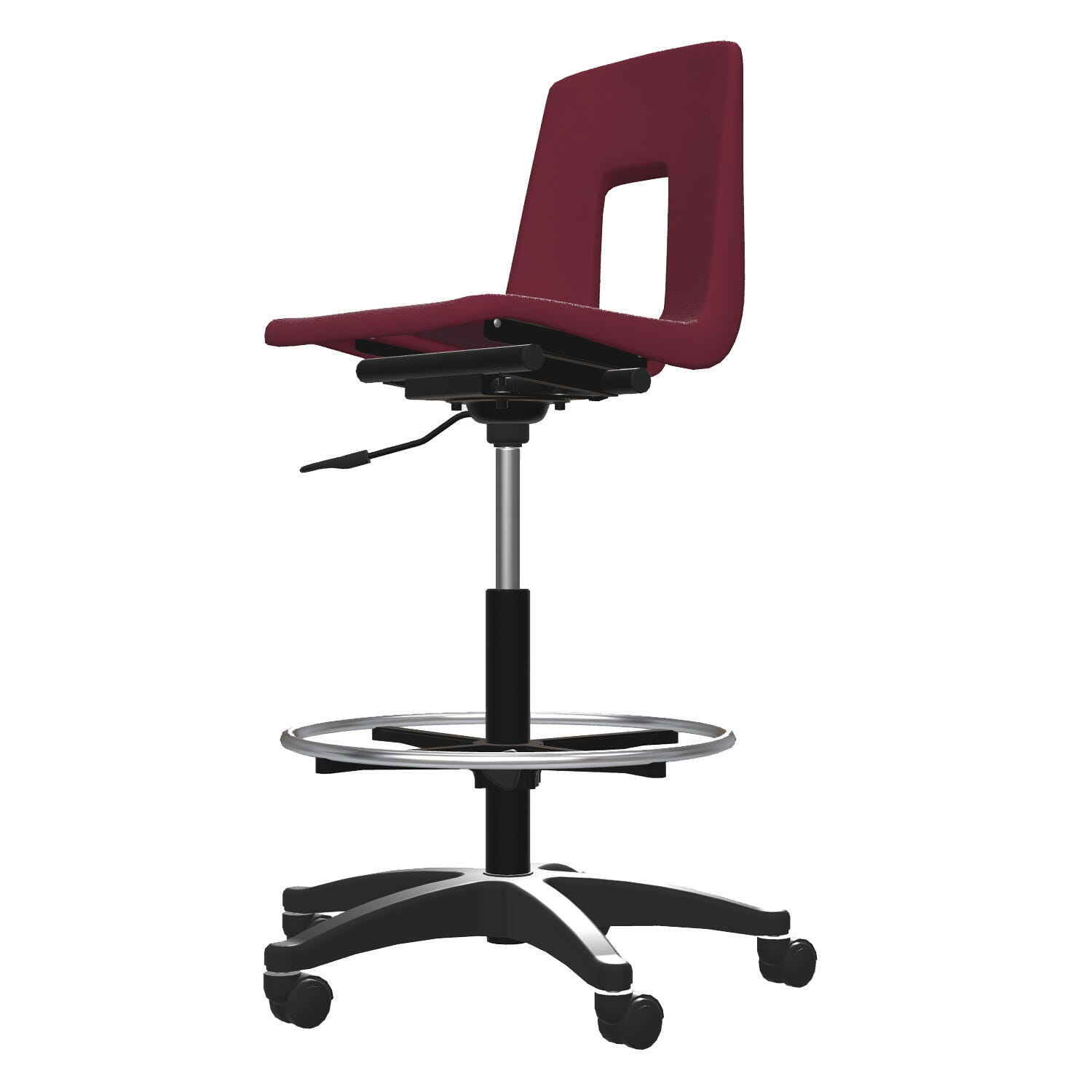 This traditional task chair is the right choice for durability and mobility needs. The chair has a one-piece polypropylene shell and a tapered opening in the back to eliminate pressure points and provide lower back support. The sturdy 5-star base has a 24-inch diameter, swivels 360 degrees, and features durable 2-inch dual casters. With an adjustable pneumatic height of 24 to 34 inches, and a simple turn handle to adjust the 20-inch foot ring this chair is comfortable at any height.