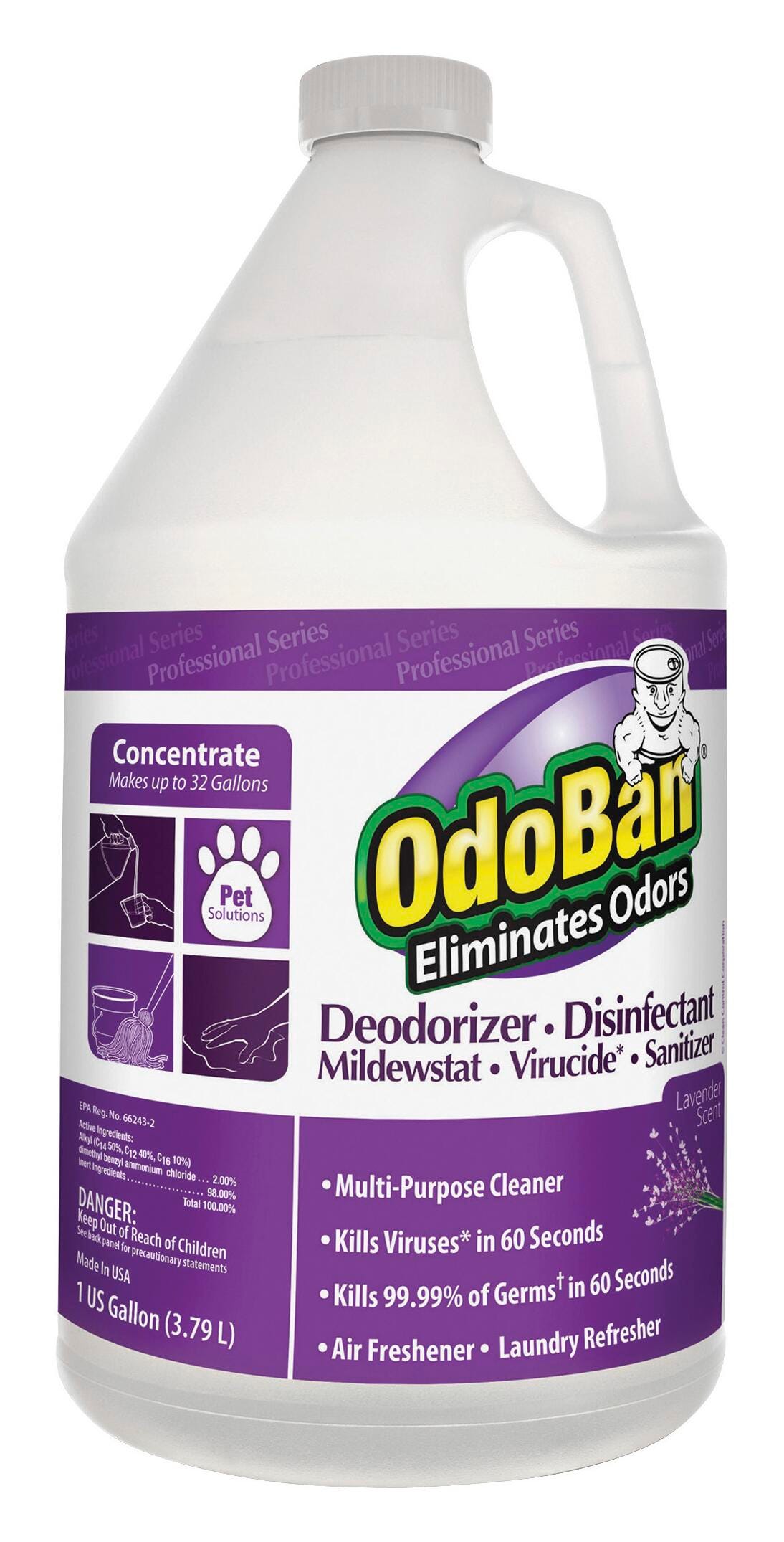 OdoBan Deodorizer Disinfectant Cleaner Concentrate, Concentrate Liquid, 1 gal (128 fl oz ), Lavender Scent, Purple. Sold as an Each