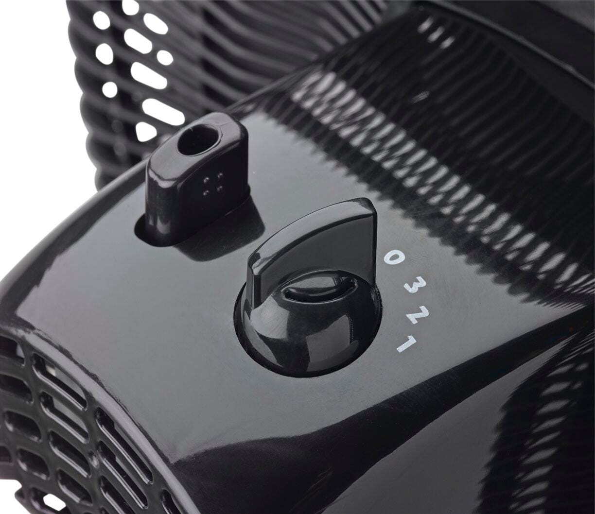 Fan Diameter: 12" Blade Span Speed Settings: 3 Features: Quiet Features: Oscillating Features: Adjustable Color: Black Simple "no tools" assembly Includes a patented, fused safety plug E.T.L. listed Color: Black
