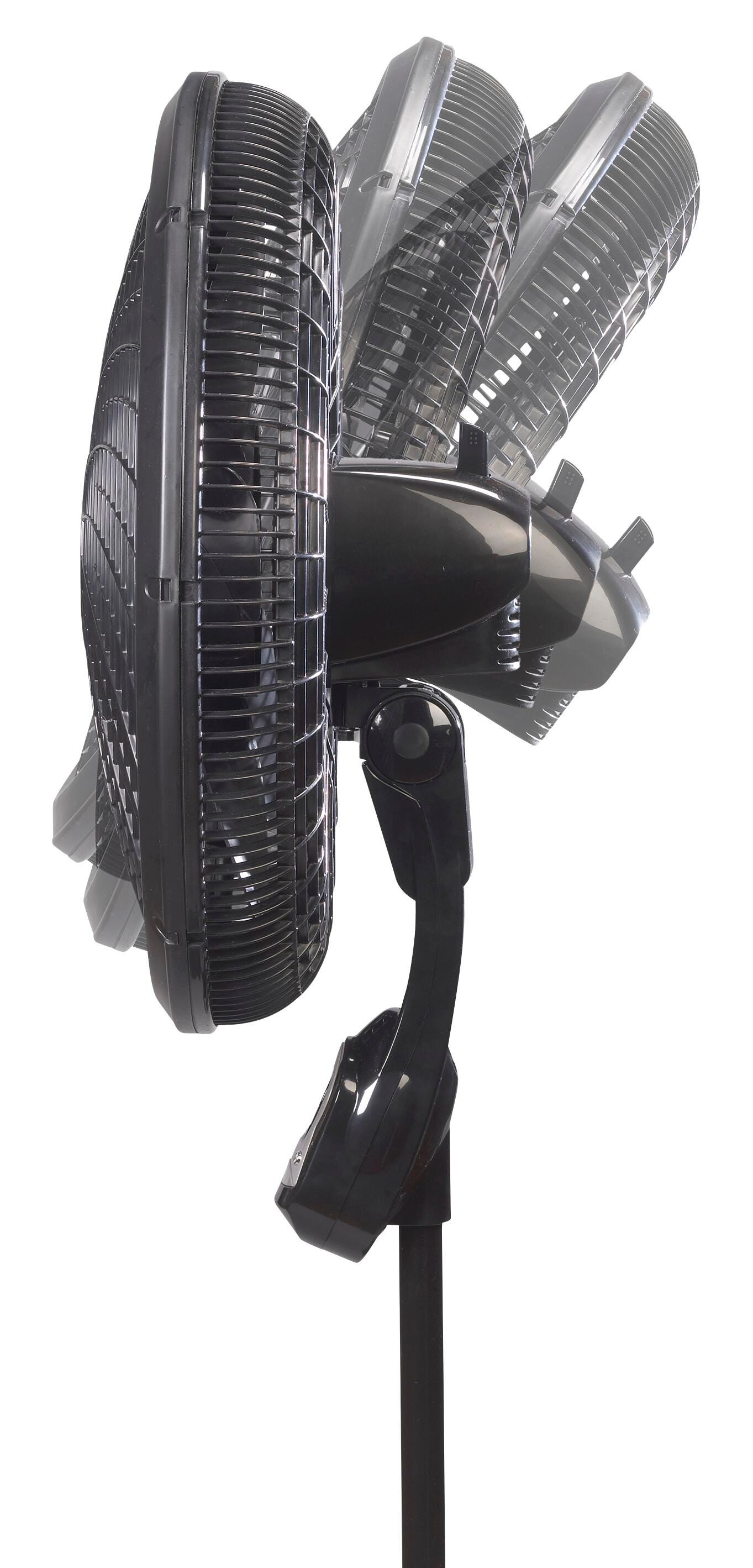 Fan Diameter: 18" Blade Span Speed Settings: 3 Features: Adjustable Height Features: Oscillating Features: Quiet Features: Programmable Features: Remote Color: Black Includes a patented, fused safety plug E.T.L. listed Color: Black