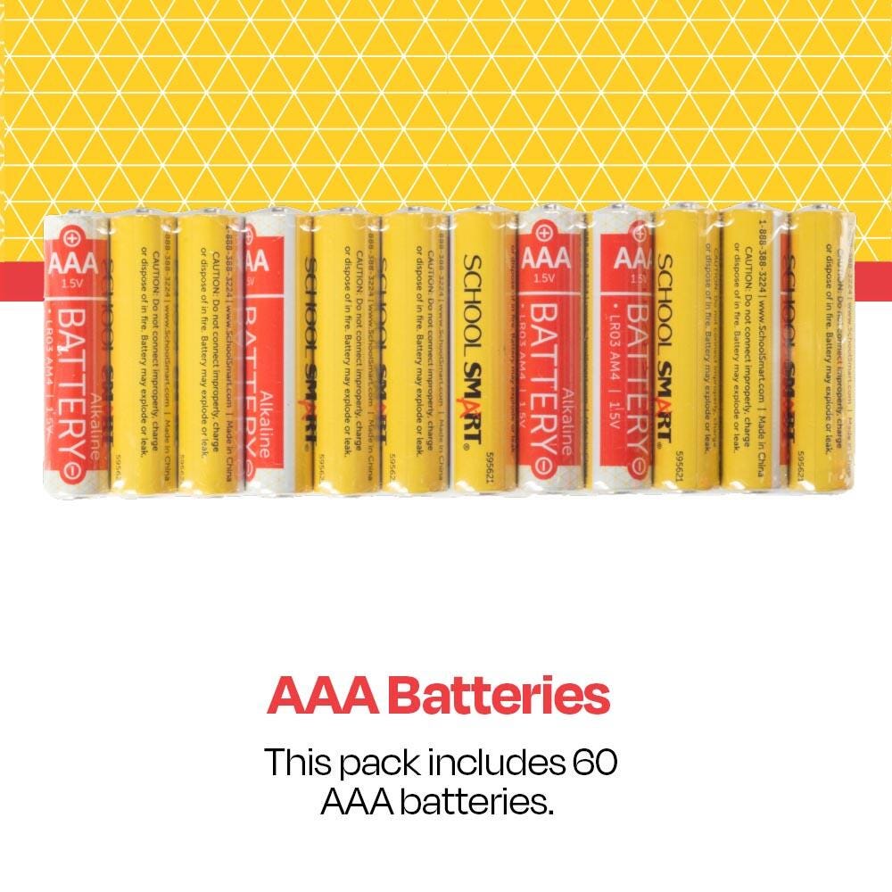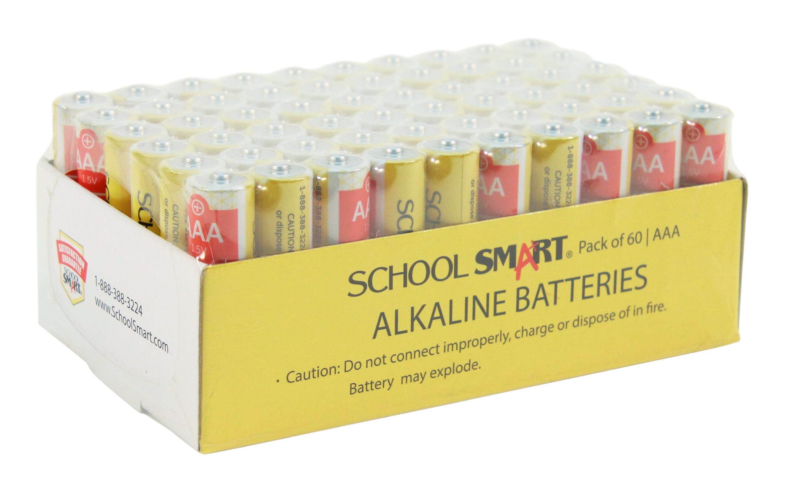 Keep your electronics energized with the School Smart AAA batteries bulk pack. The 60 pack of AAA batteries stands up to the rigors of the classroom and comes at an affordable price for teachers. Our long-lasting, high-quality alkaline batteries are ideal for everyday use. This set has 60 AAA batteries.